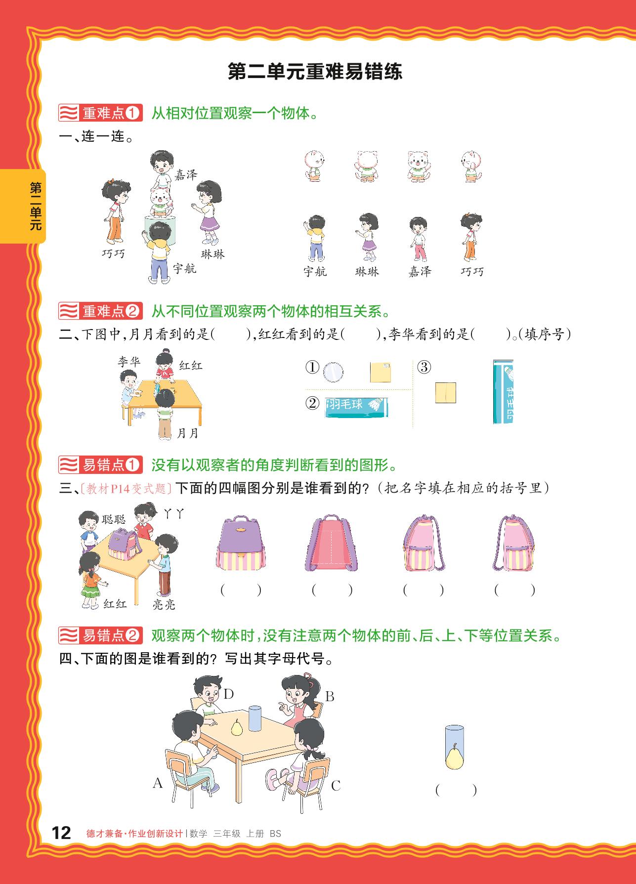 2024秋上册三年级数学北师版 第二单元重难易错练
