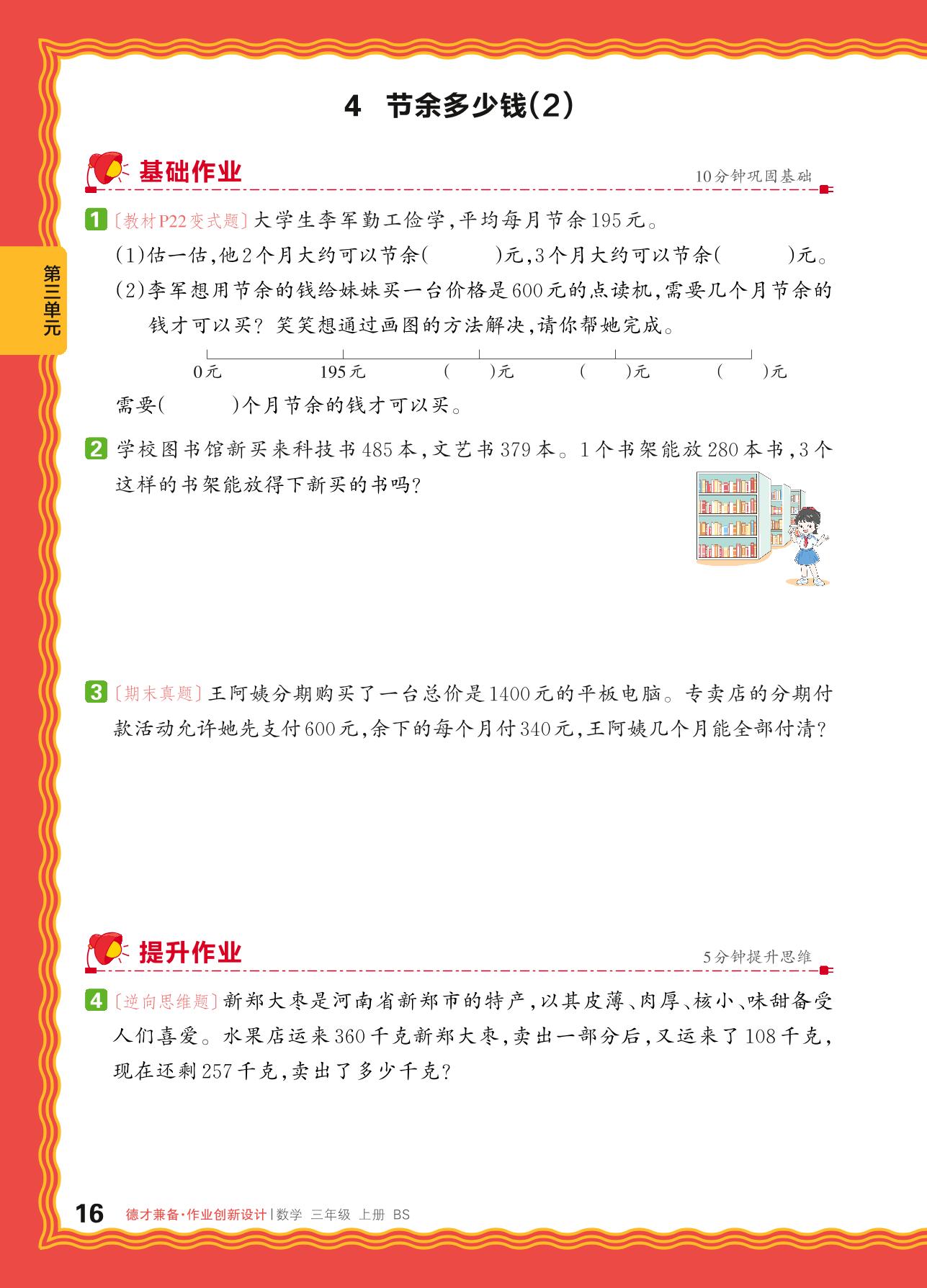 2024秋上册三年级数学北师版 第三单元 加与减——4. 节余多少钱(2)_R240819161351308