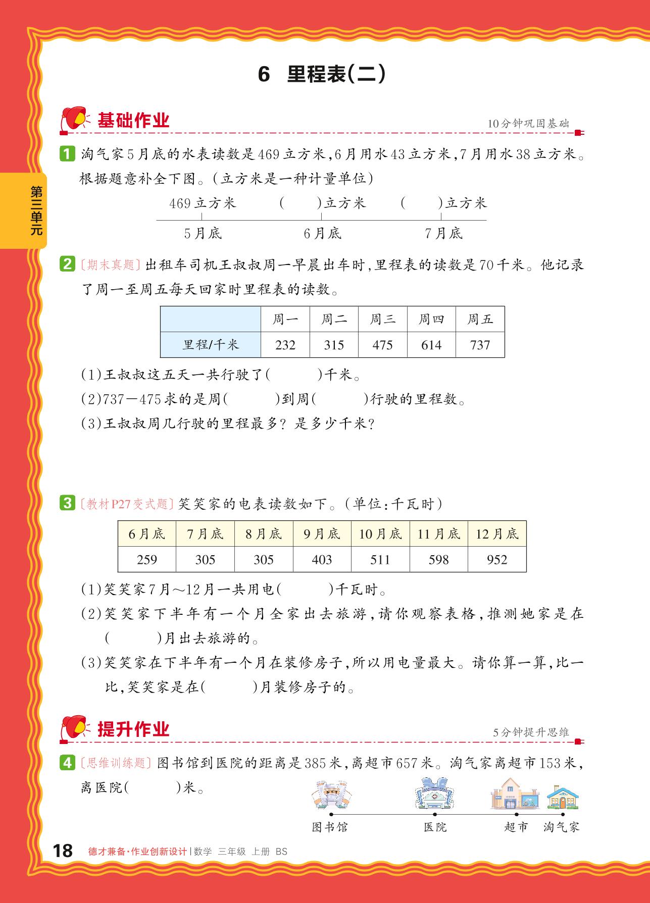 2024秋上册三年级数学北师版 第三单元 加与减——6. 里程表(二)_R240819161352931
