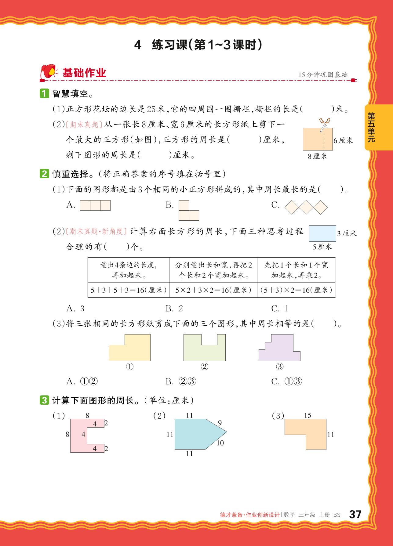 2024秋上册三年级数学北师版 第五单元 周长练习课