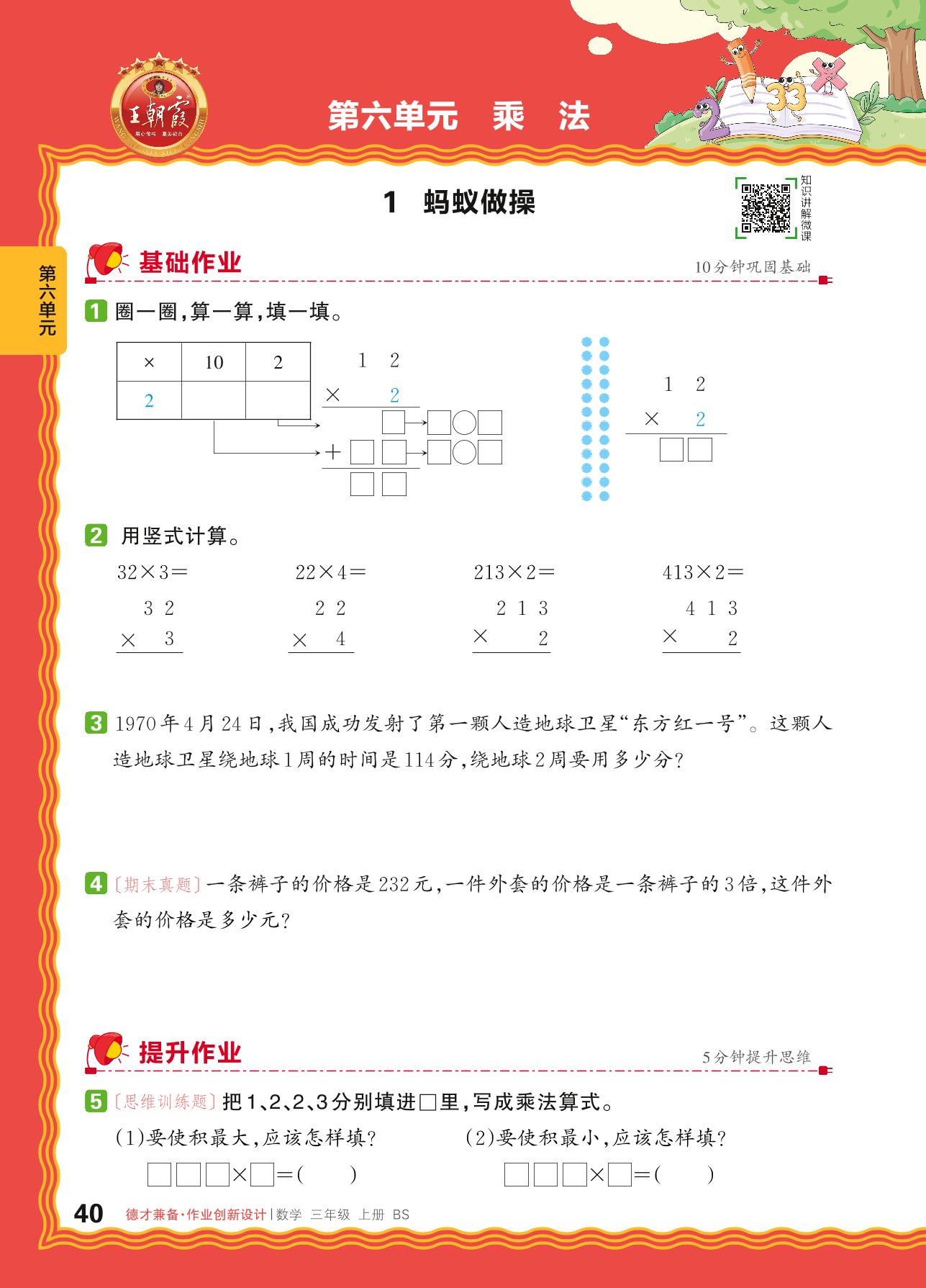 2024秋上册三年级数学北师版 第六单元 乘法——1. 蚂蚁做操_R240819161400635