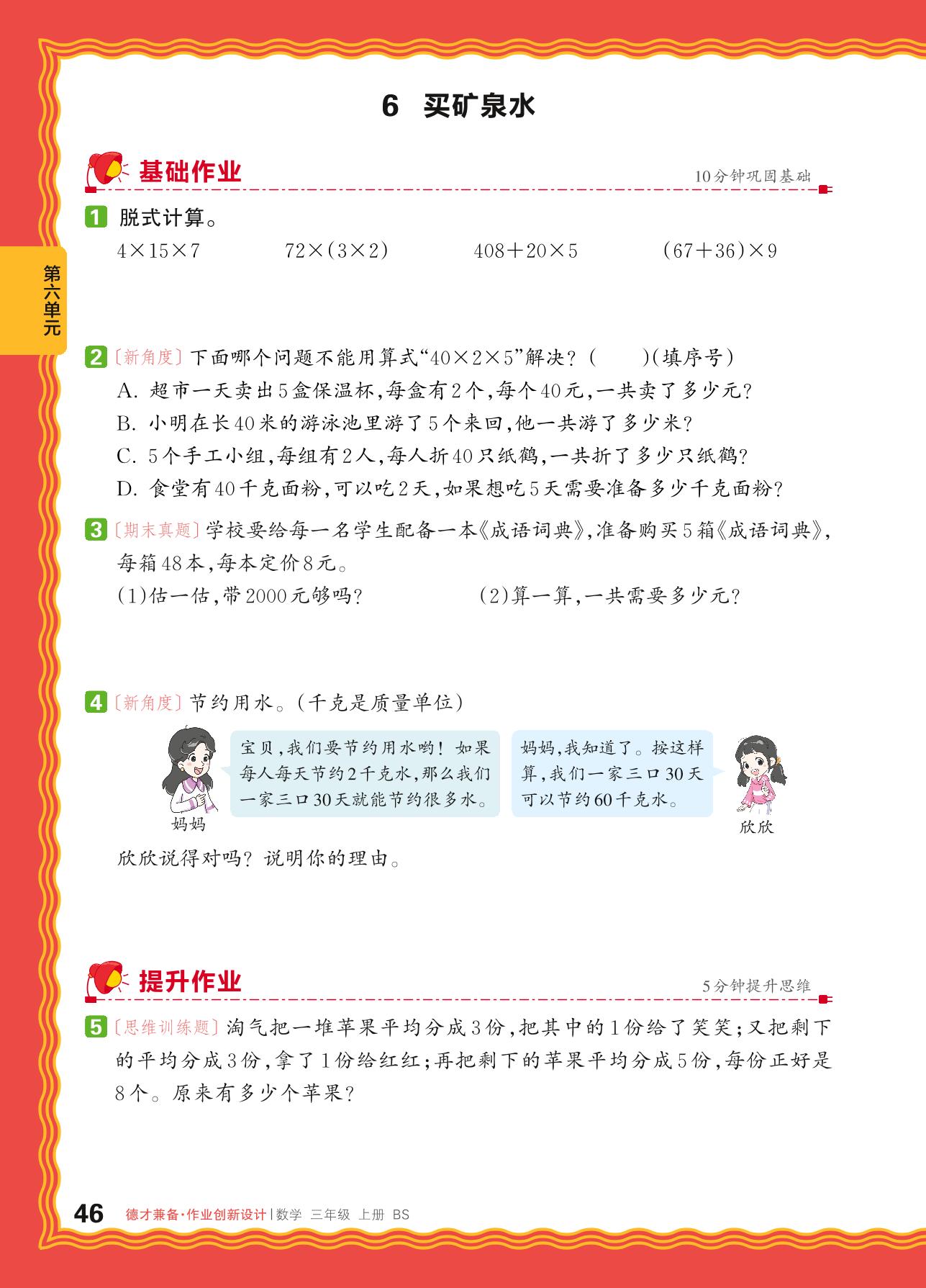 2024秋上册三年级数学北师版 第六单元 乘法——6. 买矿泉水_R240819161402626
