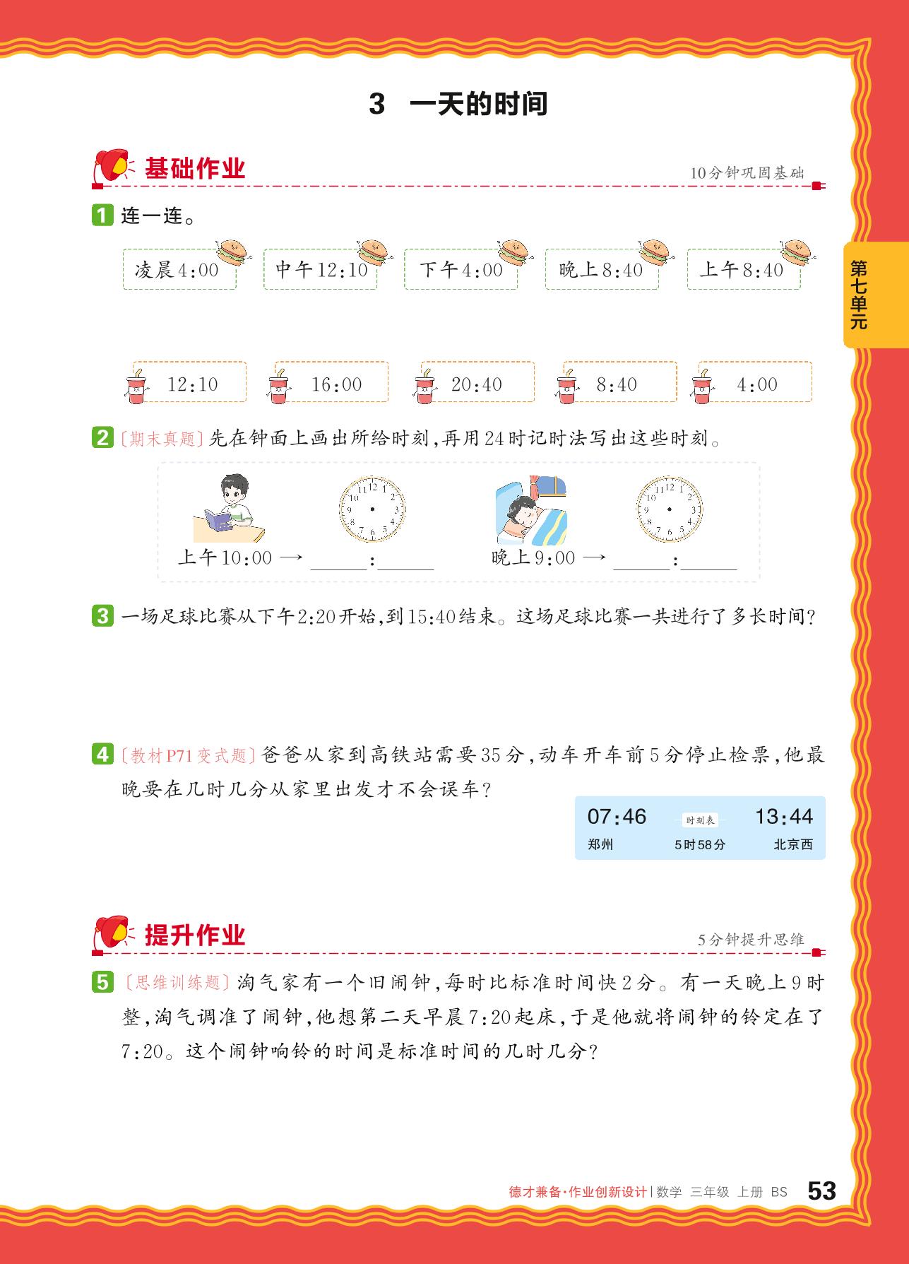 2024秋上册三年级数学北师版 第七单元 年、月、日——3. 一天的时间_R240819161404329