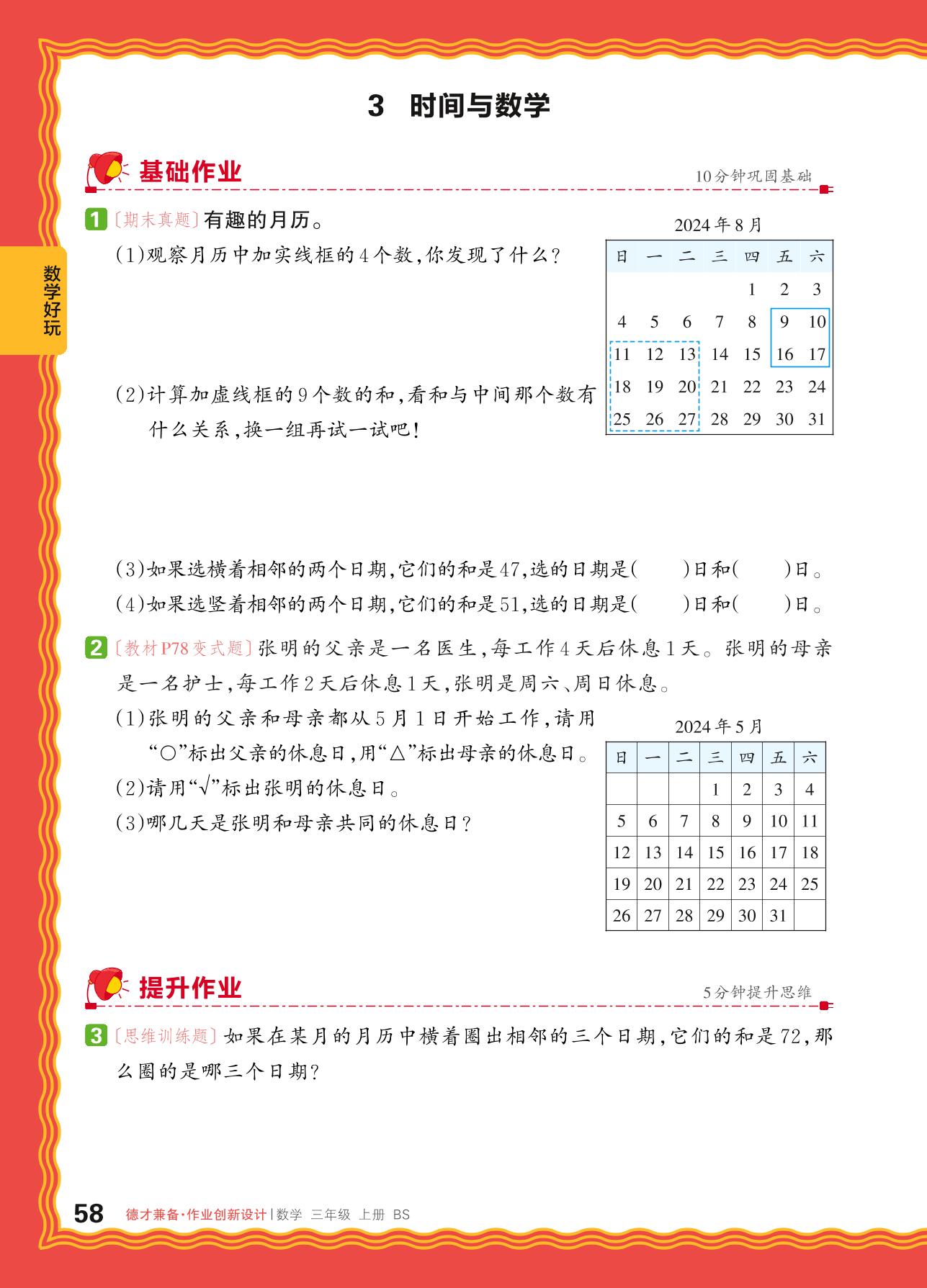 2024秋上册三年级数学北师版 数学好玩——3. 时间与数学_R240819161407200
