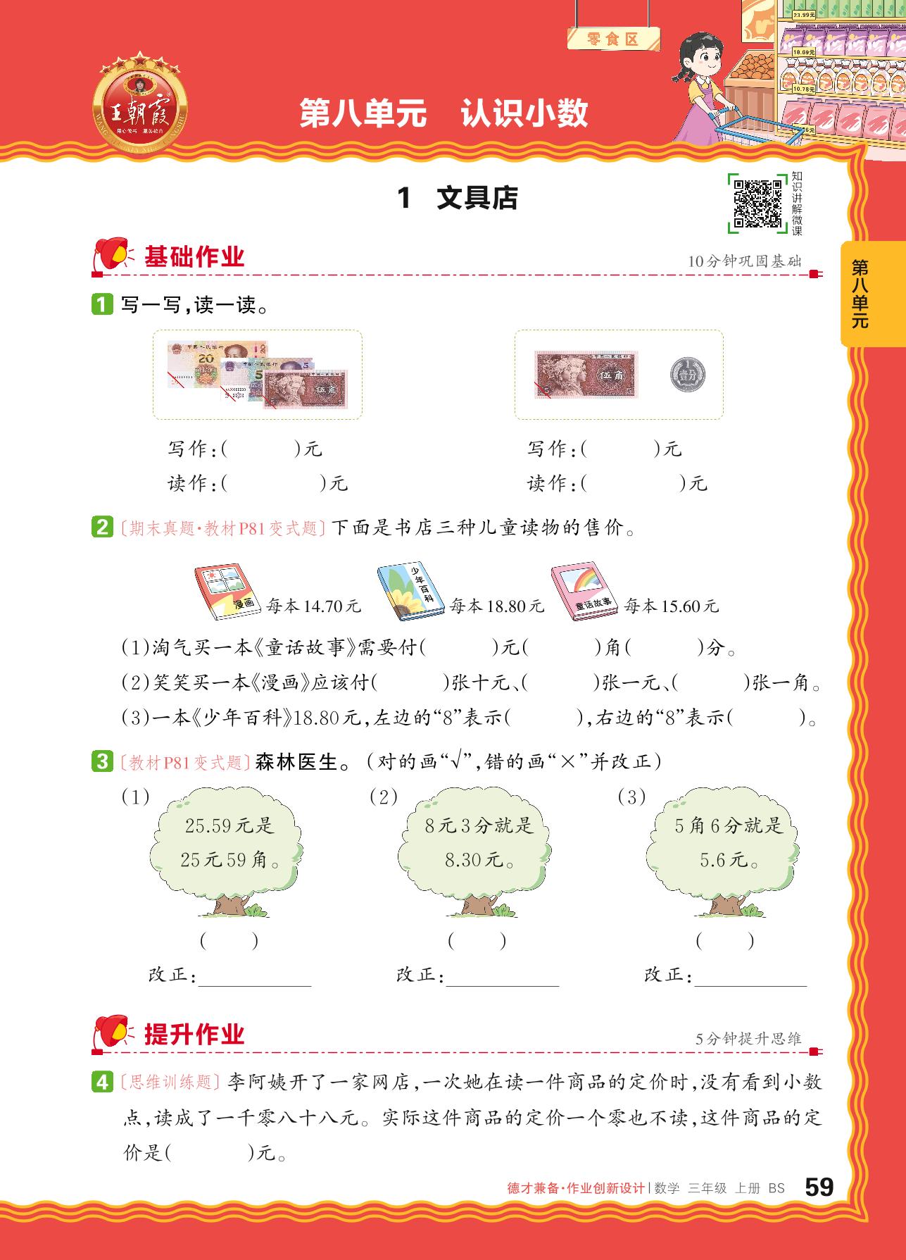 2024秋上册三年级数学北师版 第八单元 认识小数——1. 文具店_R240819161407512