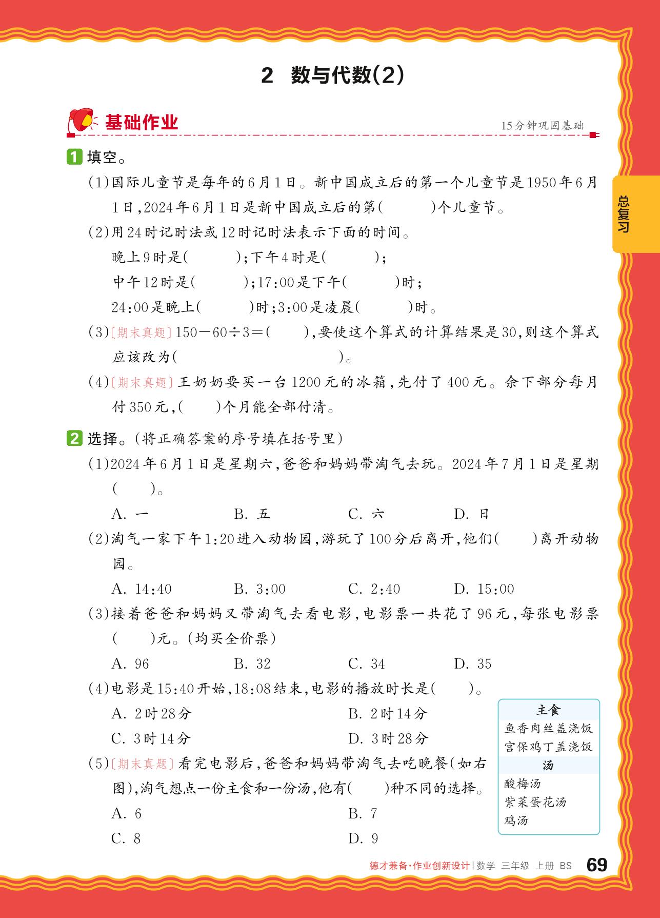 2024秋上册三年级数学北师版 总复习——2. 数与代数(2)_R240819161411997