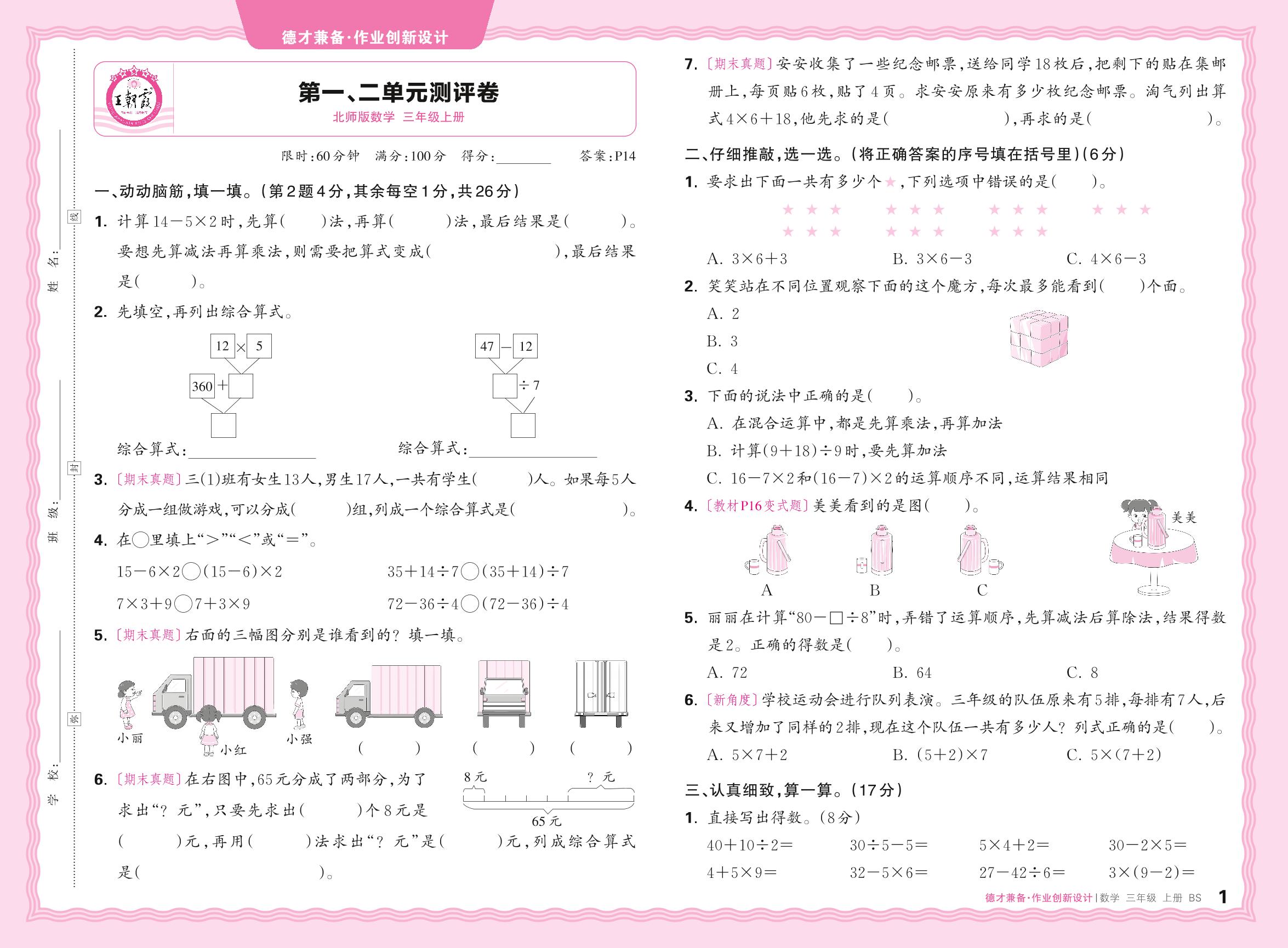 2024秋上册三年级数学北师版 第一、二单元测评卷