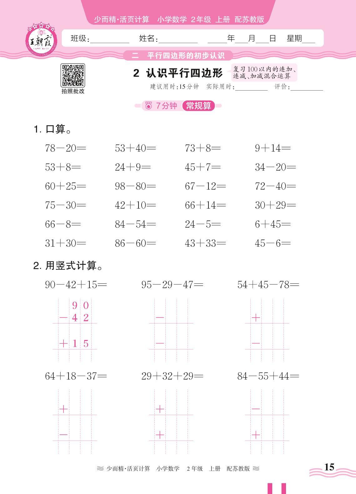 二年级数学苏教版上册课时作业