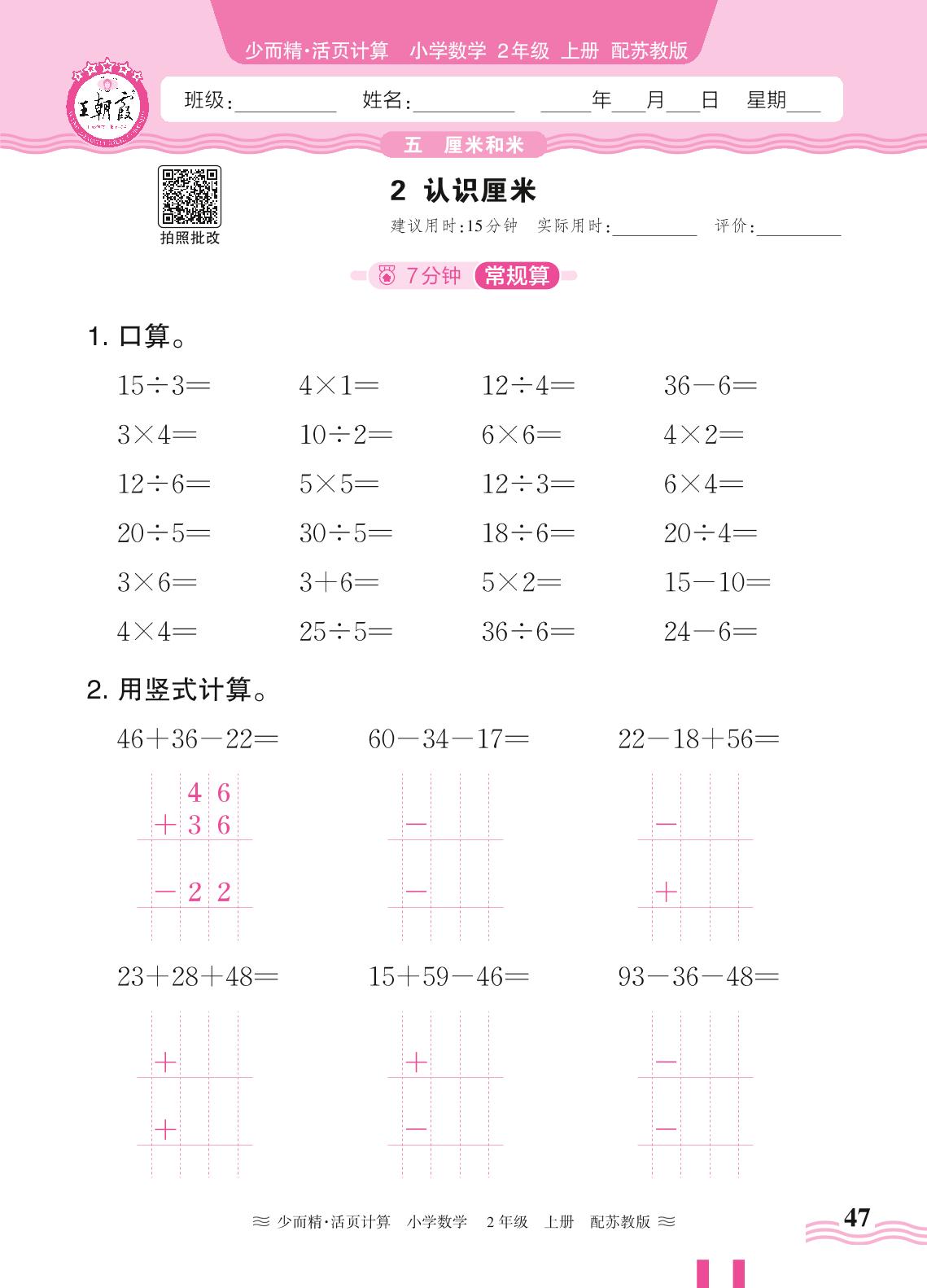 二年级数学苏教版上册课时作业