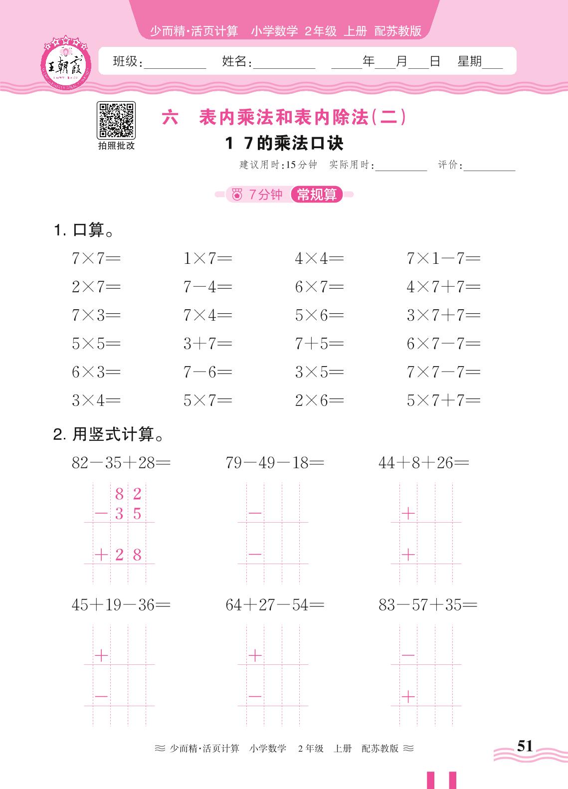 第六单元 表内乘法和表内除法(二)——1. 7的乘法口诀