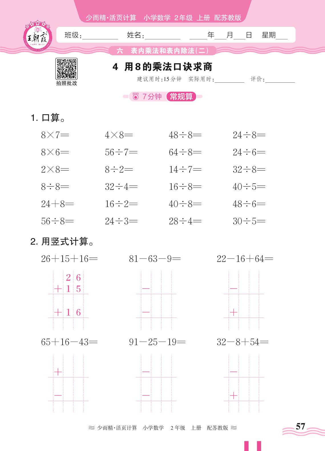 第六单元 表内乘法和表内除法(二)——4. 用8的乘法口诀求商