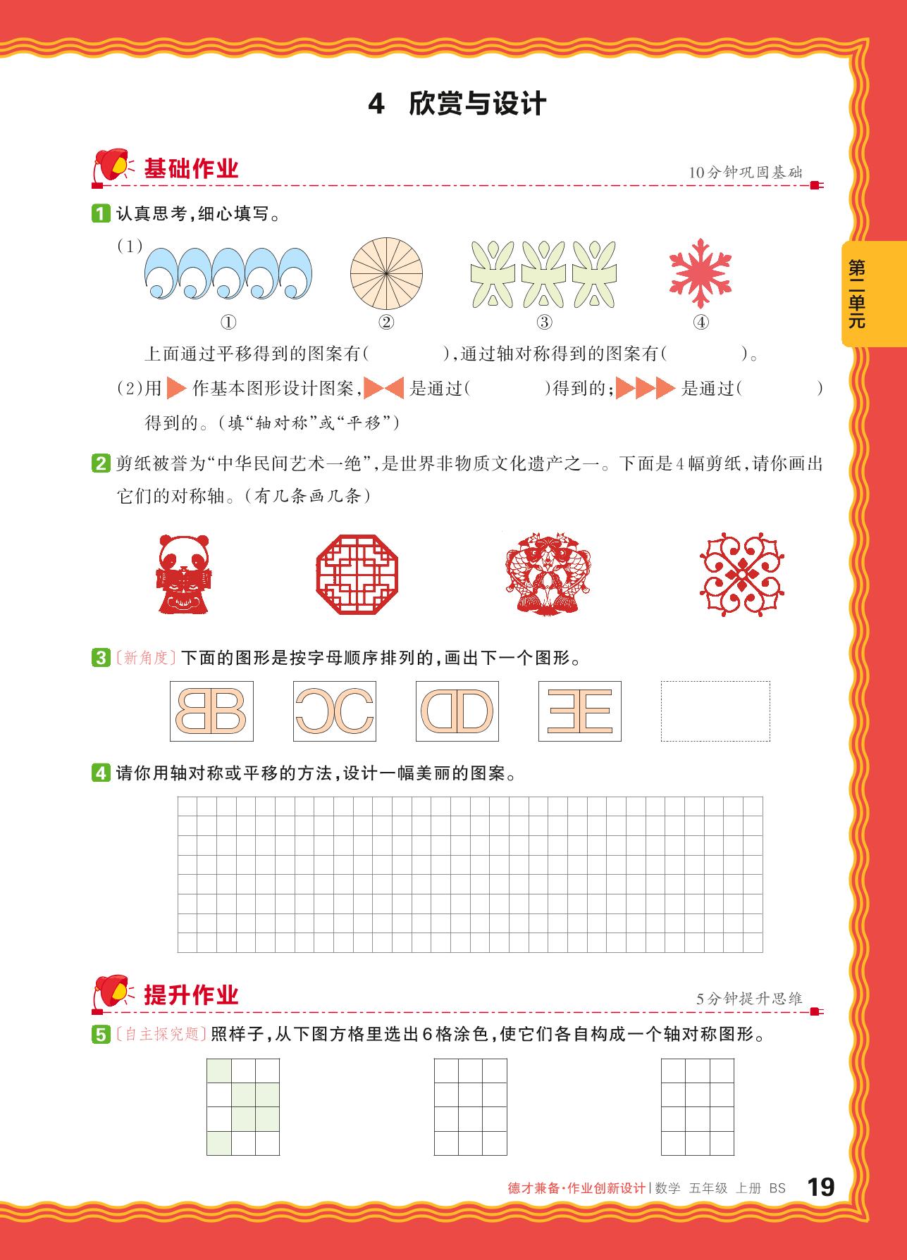 2024秋上册五年级数学北师版 第二单元 轴对称和平移——4. 欣赏与设计_R240819163135398