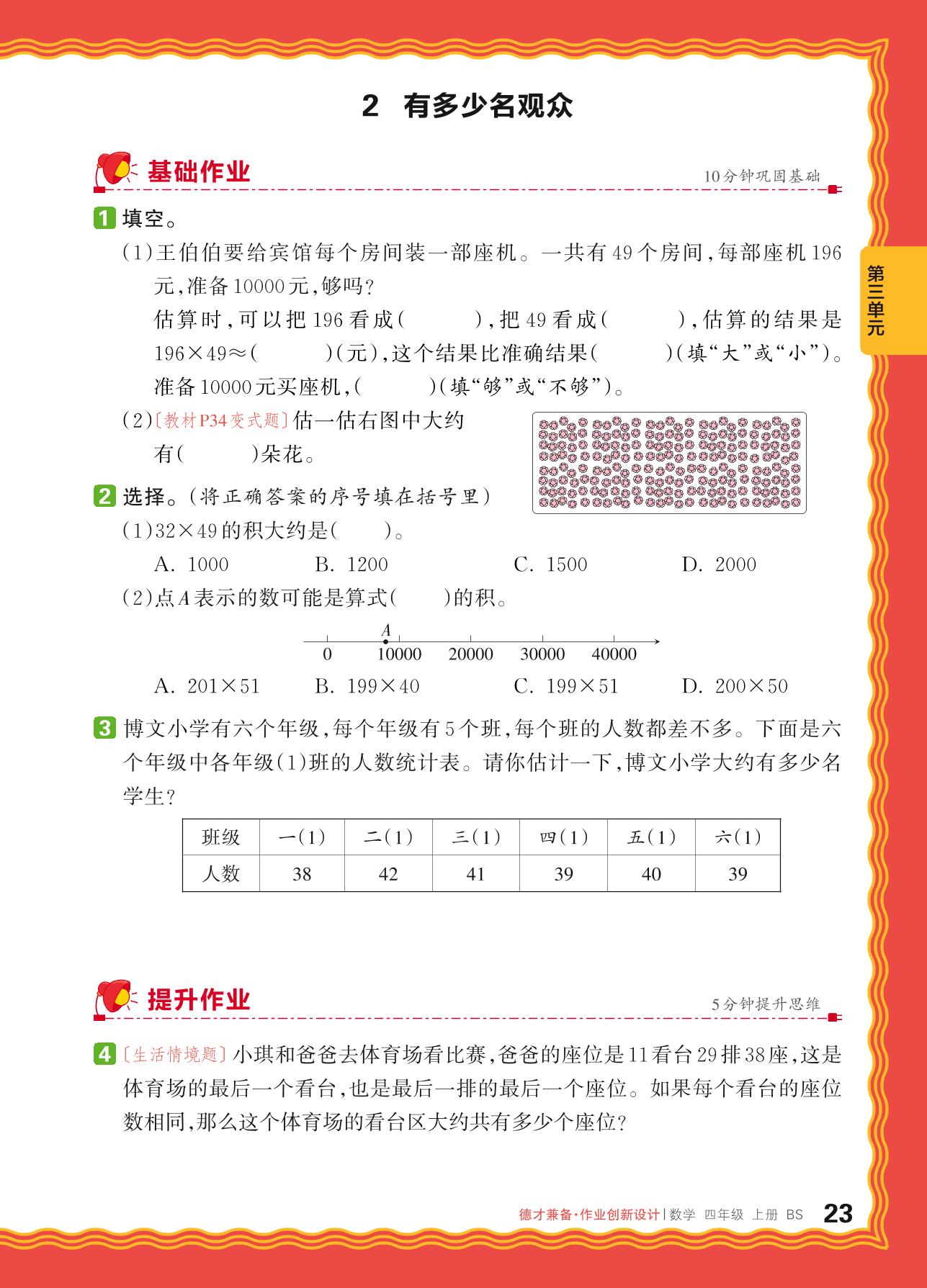 2024秋上册四年级数学北师版 第三单元 乘法——2. 有多少名观众