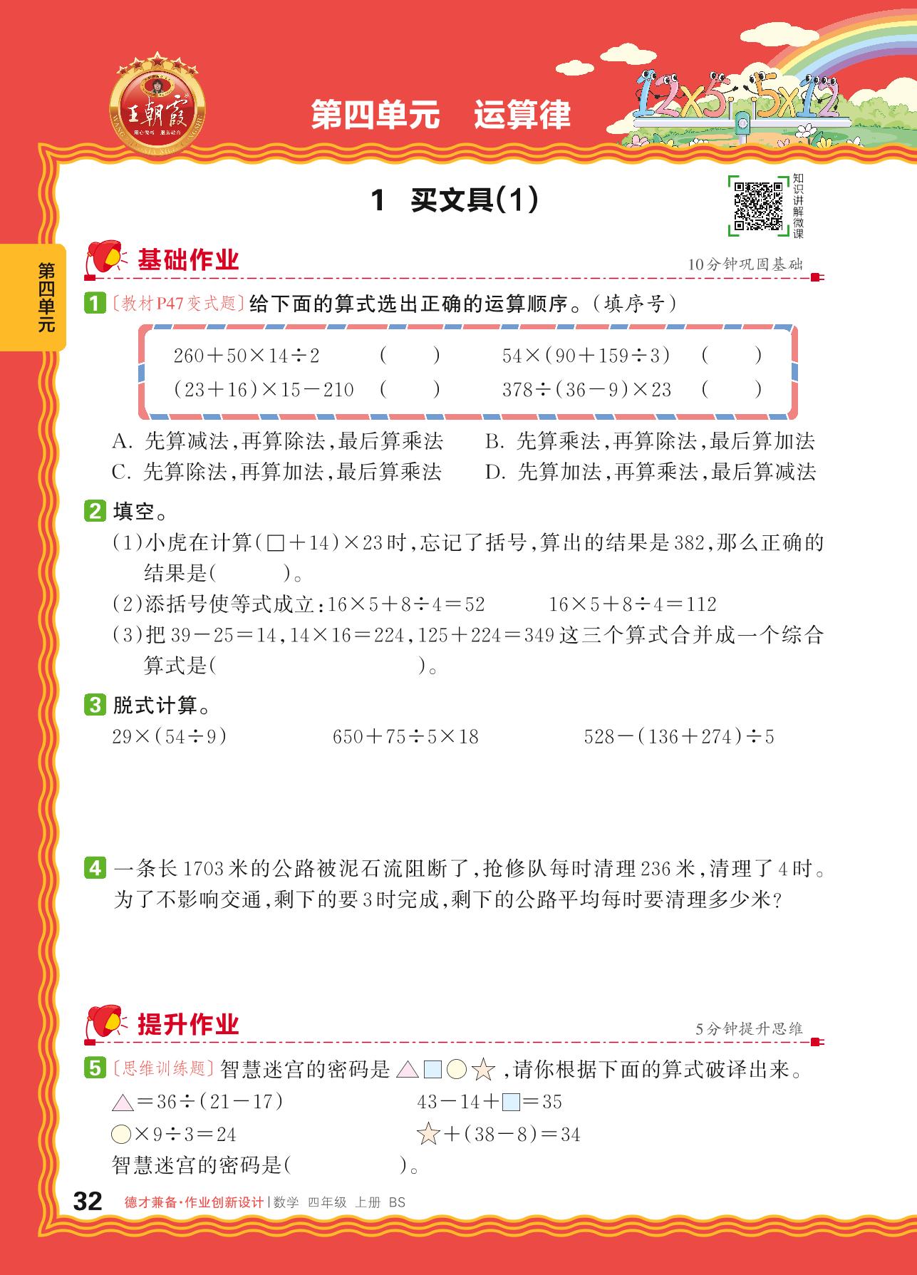 2024秋上册四年级数学北师版 第四单元 运算律——1. 买文具(1)_R240819163203659