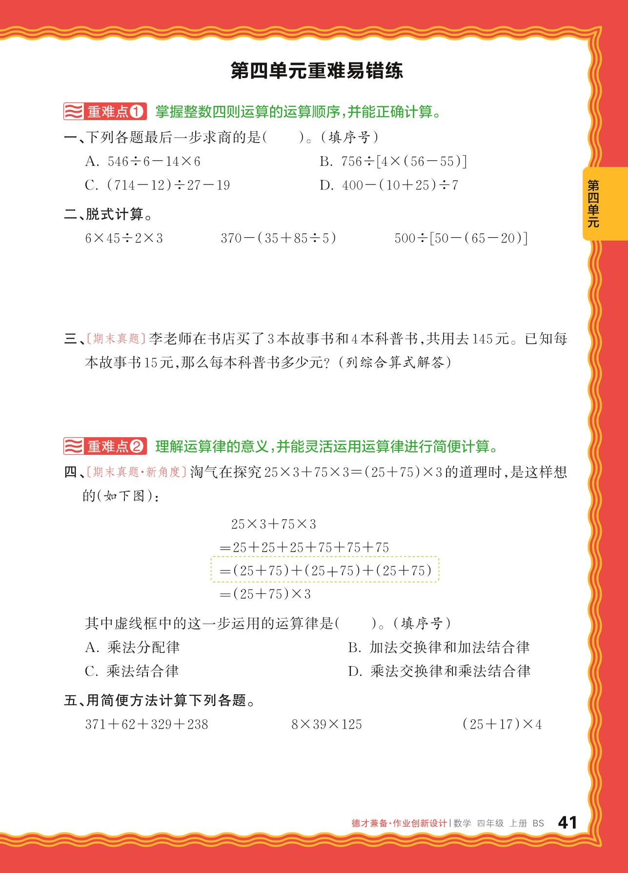 2024秋上册四年级数学北师版 第四单元重难易错练