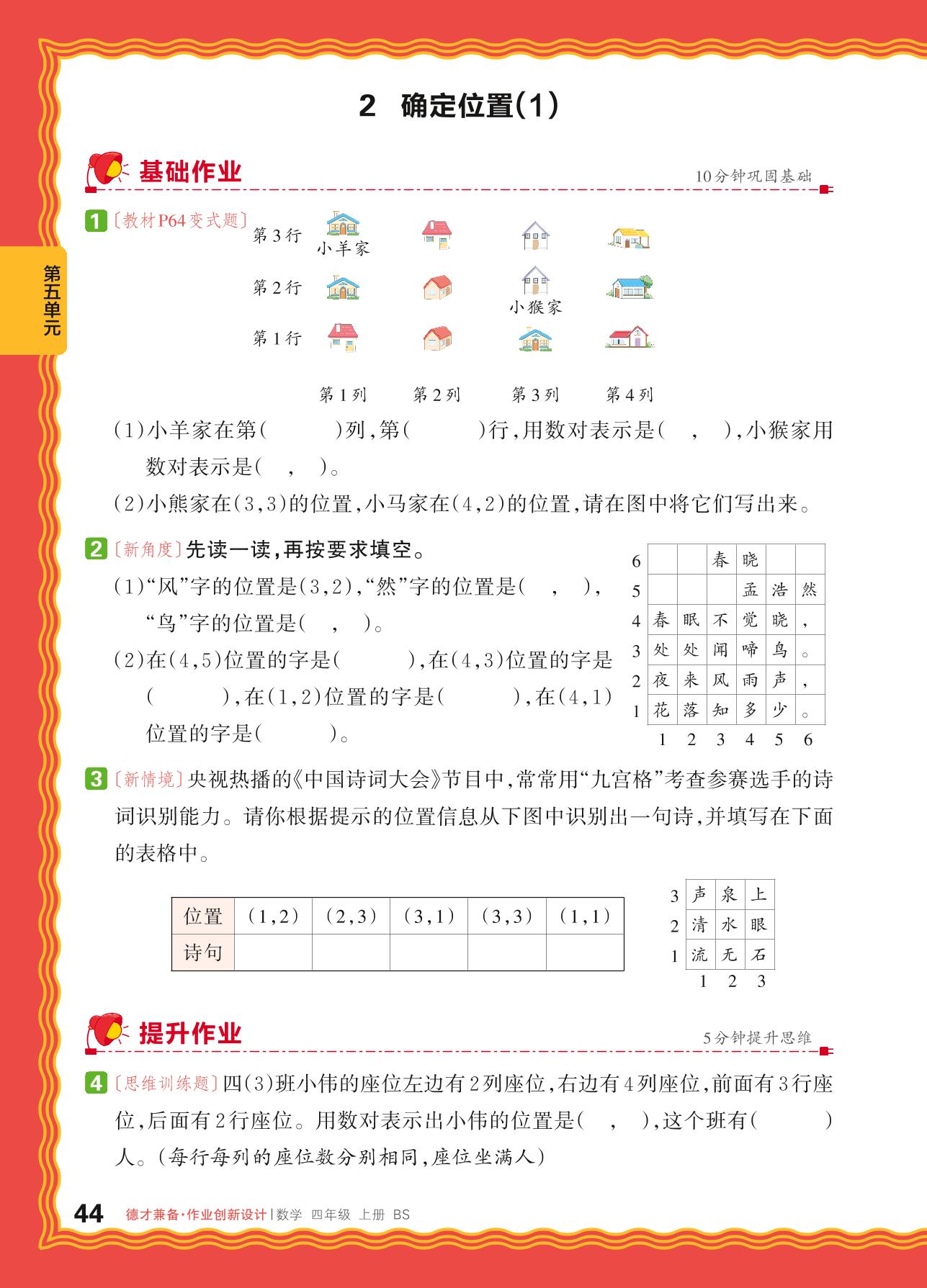 2024秋上册四年级数学北师版 第五单元 方向与位置——2. 确定位置(1)_R240819163208520