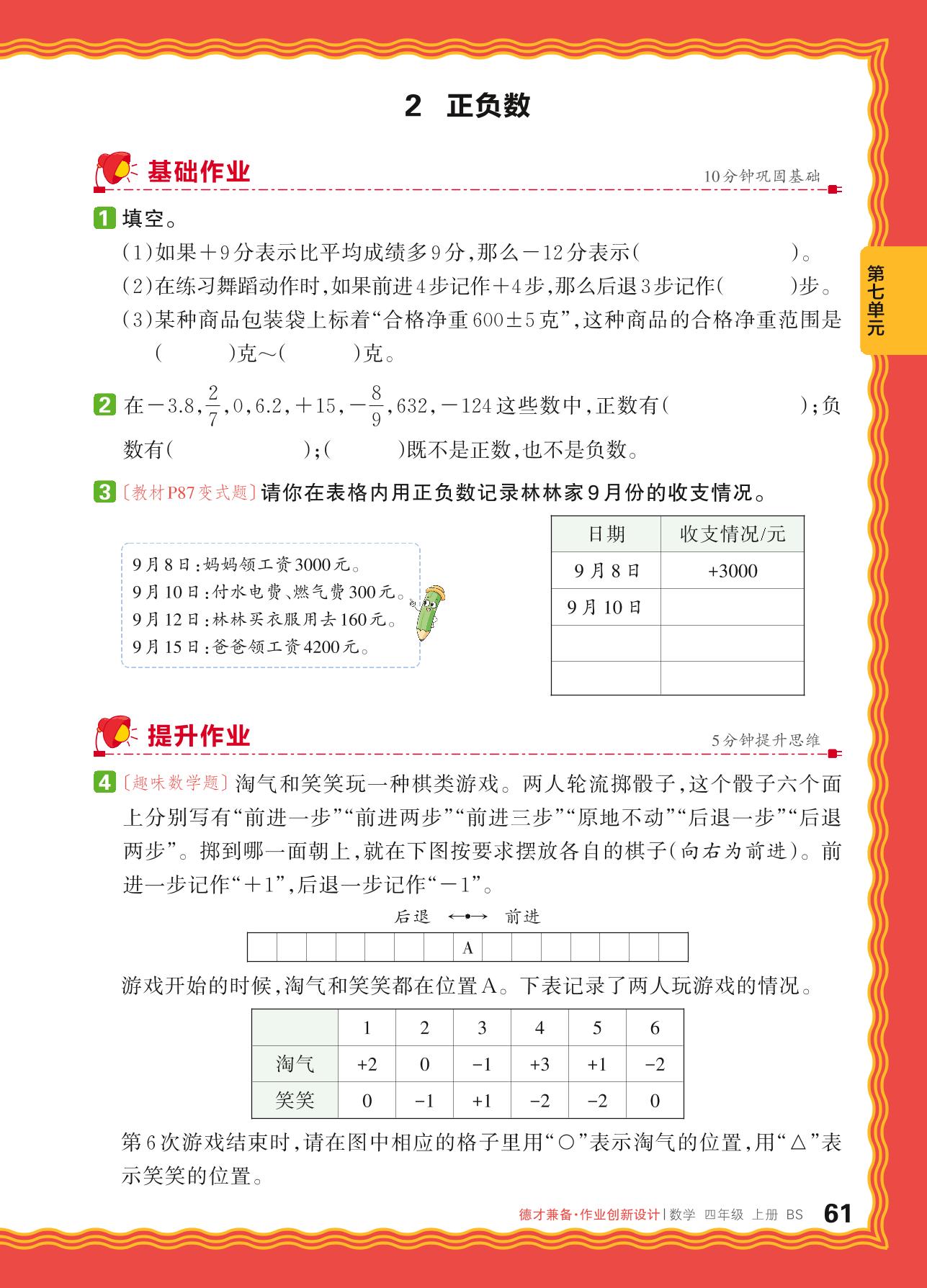 2024秋上册四年级数学北师版 第七单元 生活中的负数——2. 正负数_R240819163214006