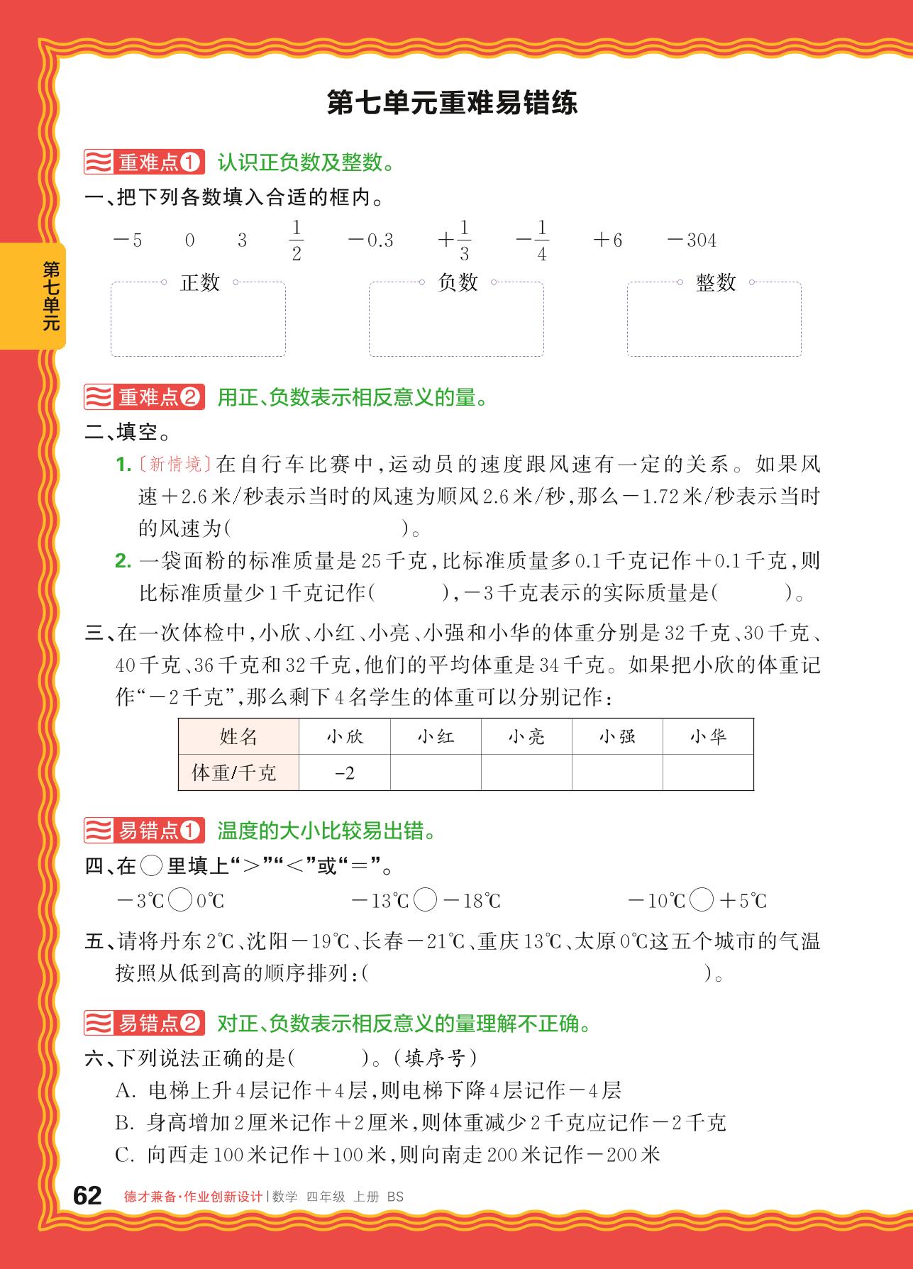 2024秋上册四年级数学北师版 第七单元重难易错练
