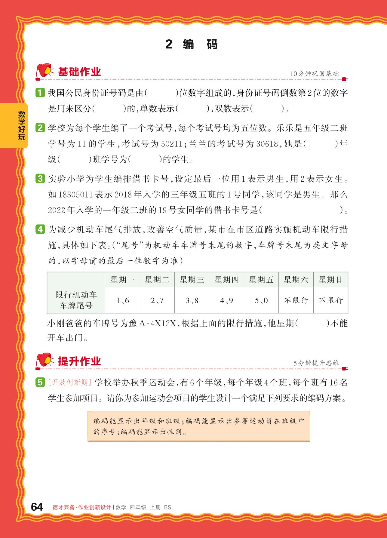 2024秋上册四年级数学北师版 数学好玩——2. 编码_R240819163215576