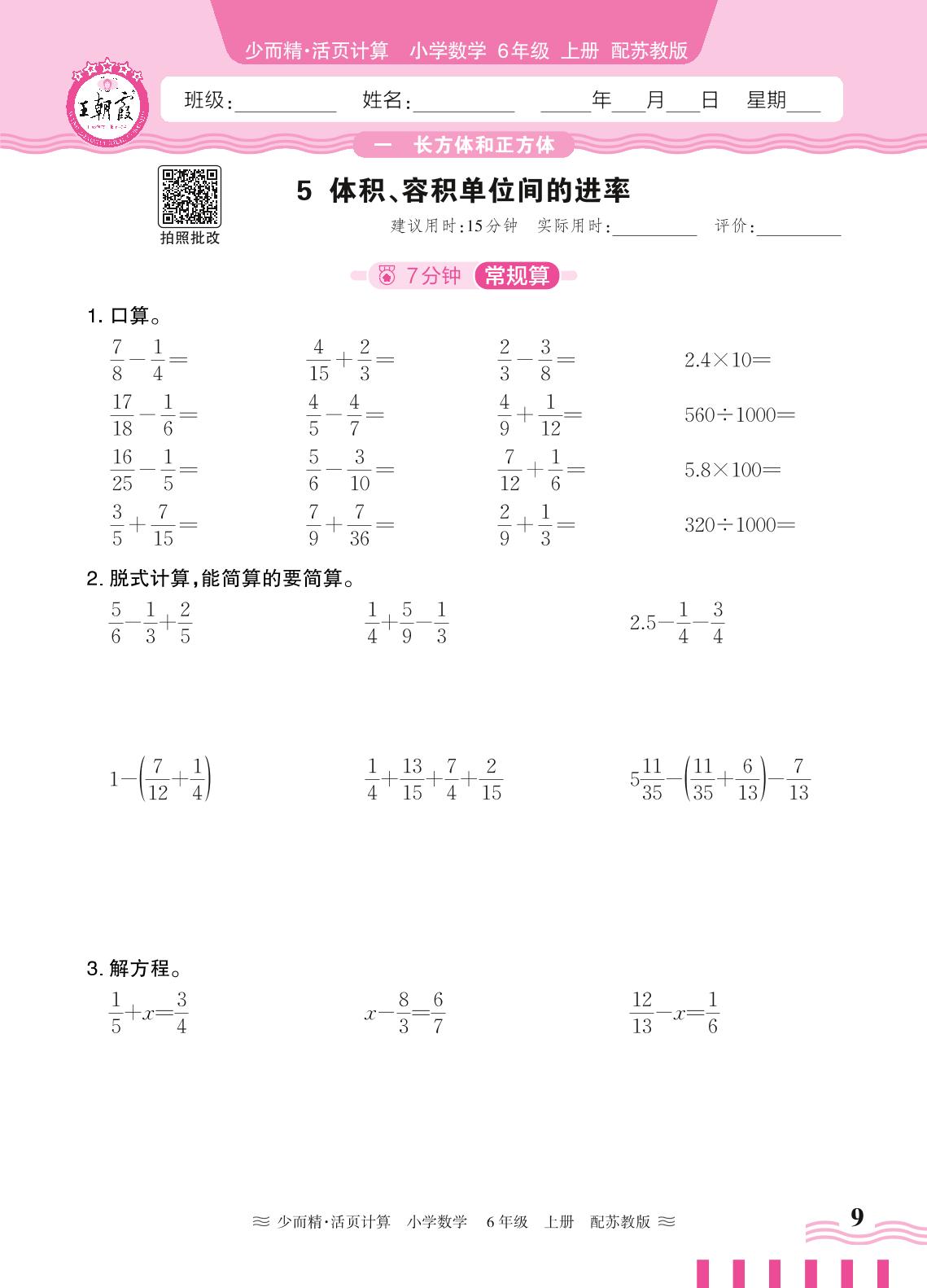 2024秋上册六年级数学苏教版 第一单元 长方体和正方体——5. 体积、容积单位间的进率