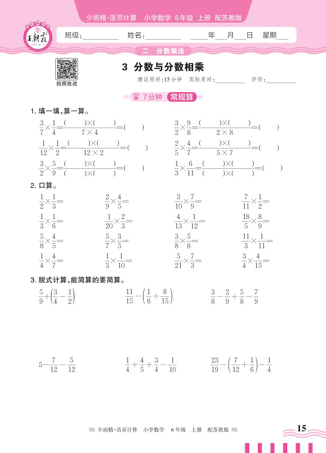 2024秋上册六年级数学苏教版 第二单元 分数乘法——3. 分数与分数相乘
