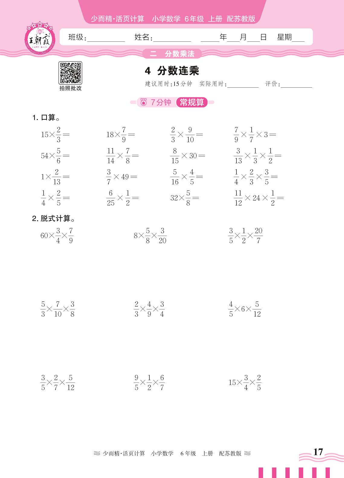 2024秋上册六年级数学苏教版 第二单元 分数乘法——4. 分数连乘