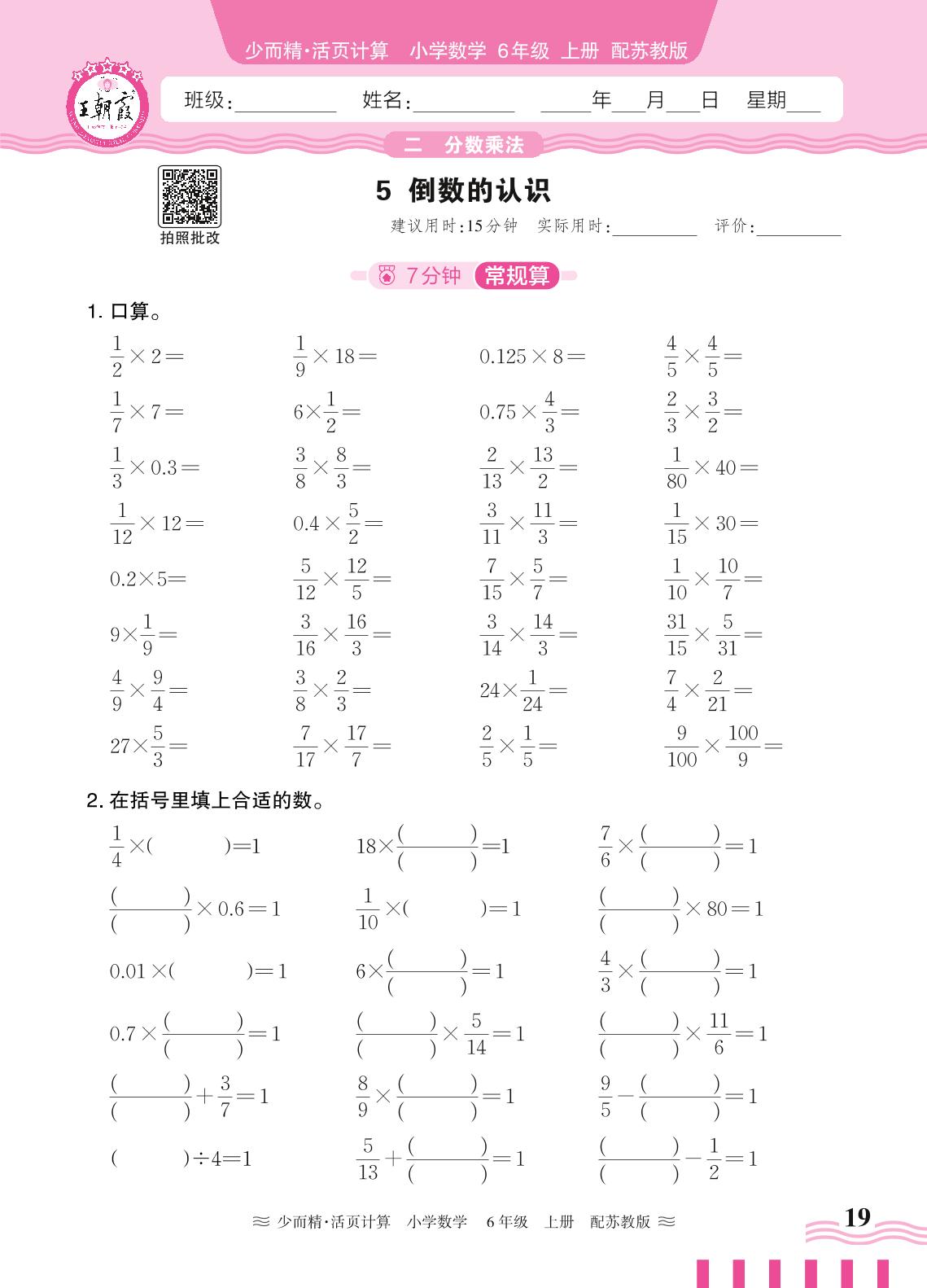 2024秋上册六年级数学苏教版 第二单元 分数乘法——5. 倒数的认识