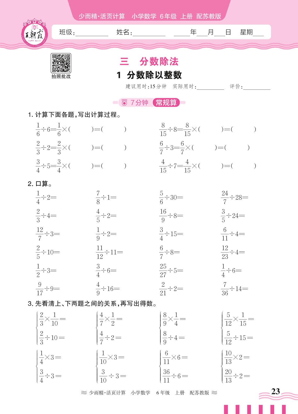 2024秋上册六年级数学苏教版 第三单元 分数除法——1. 分数除以整数_R240819164516345