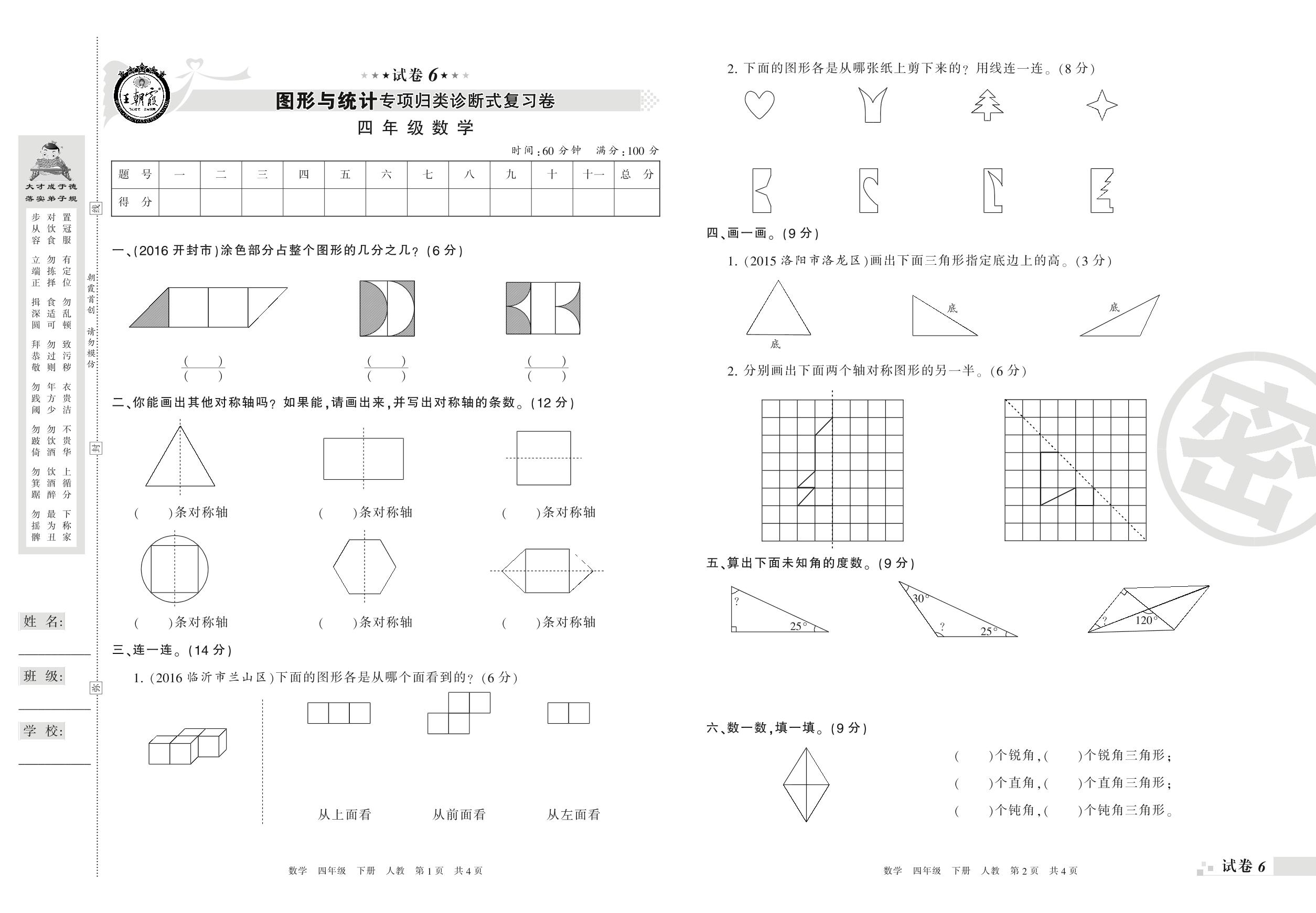王朝霞期末专项卷——图形与统计专项归类诊断式复习卷四年级下册数学(人教版)_R210804160043【6】