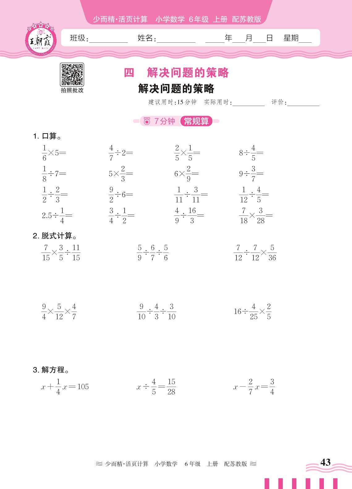 2024秋上册六年级数学苏教版 第四单元 解决问题的策略——解决问题的策略