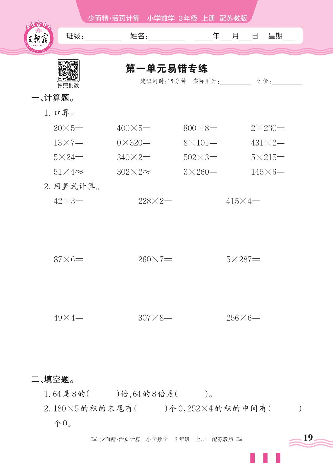 三年级数学苏教版上册专项卷