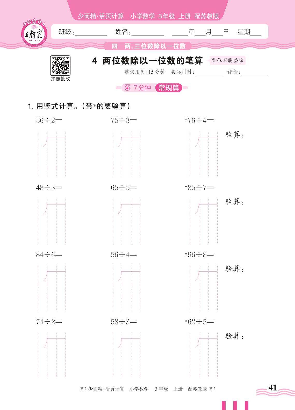 2024秋上册三年级数学苏教版 第四单元 两、三位数除以一位数——4. 两位数除以一位数的笔算
