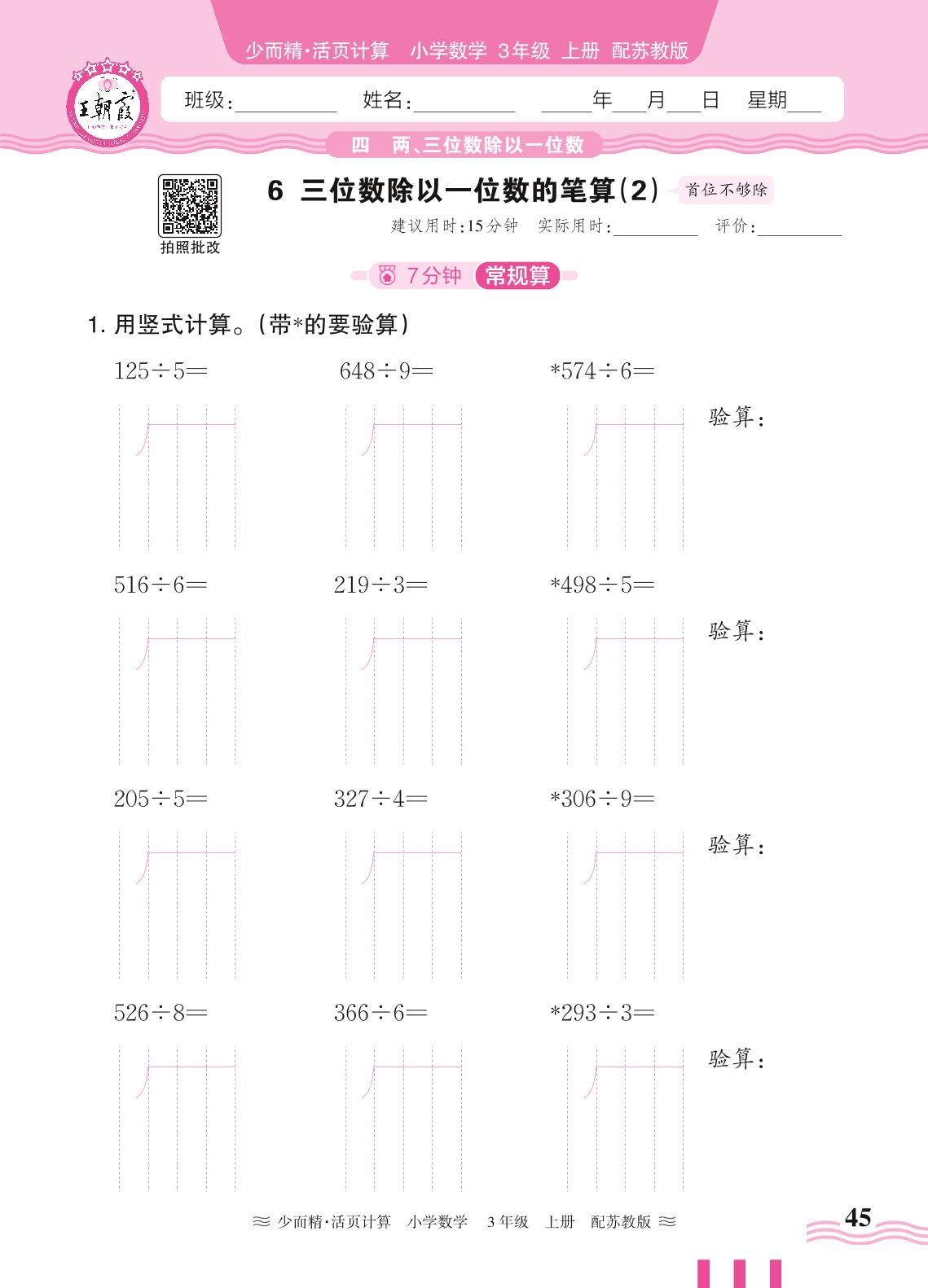 2024秋上册三年级数学苏教版 第四单元 两、三位数除以一位数——6. 三位数除以一位数的笔算(2)