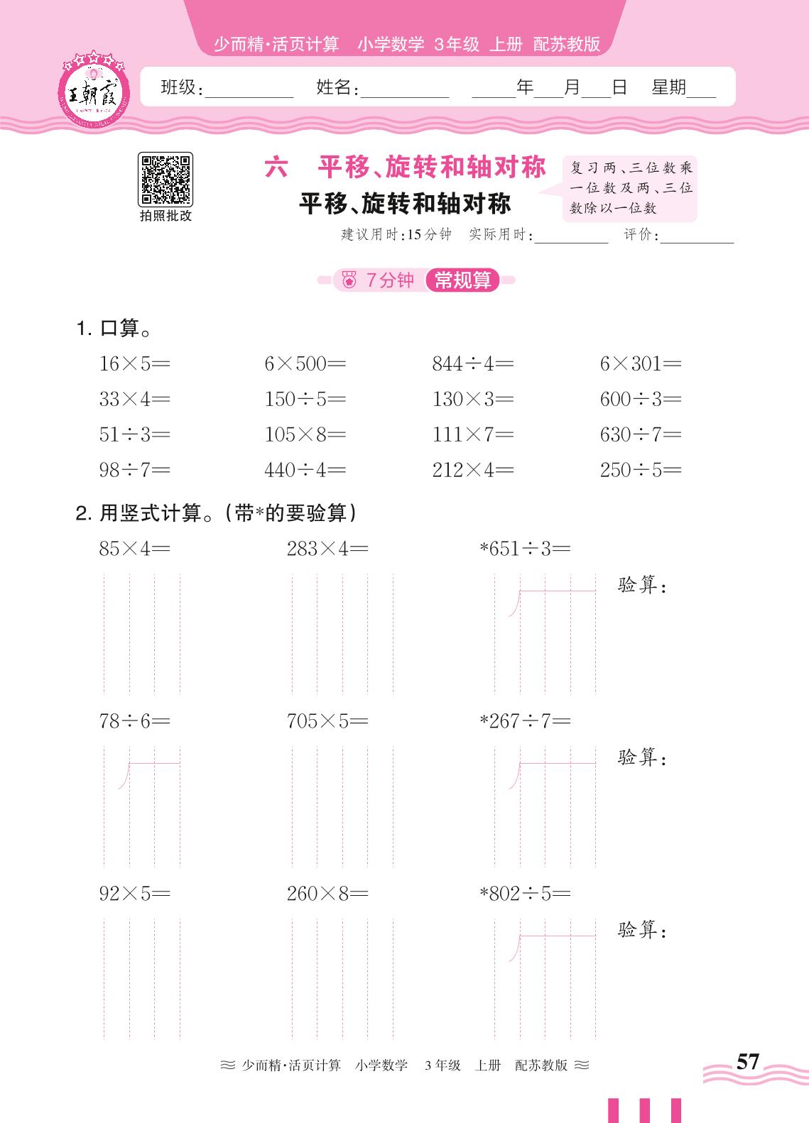 2024秋上册三年级数学苏教版 第六单元 平移、旋转和轴对称——平移、旋转和轴对称