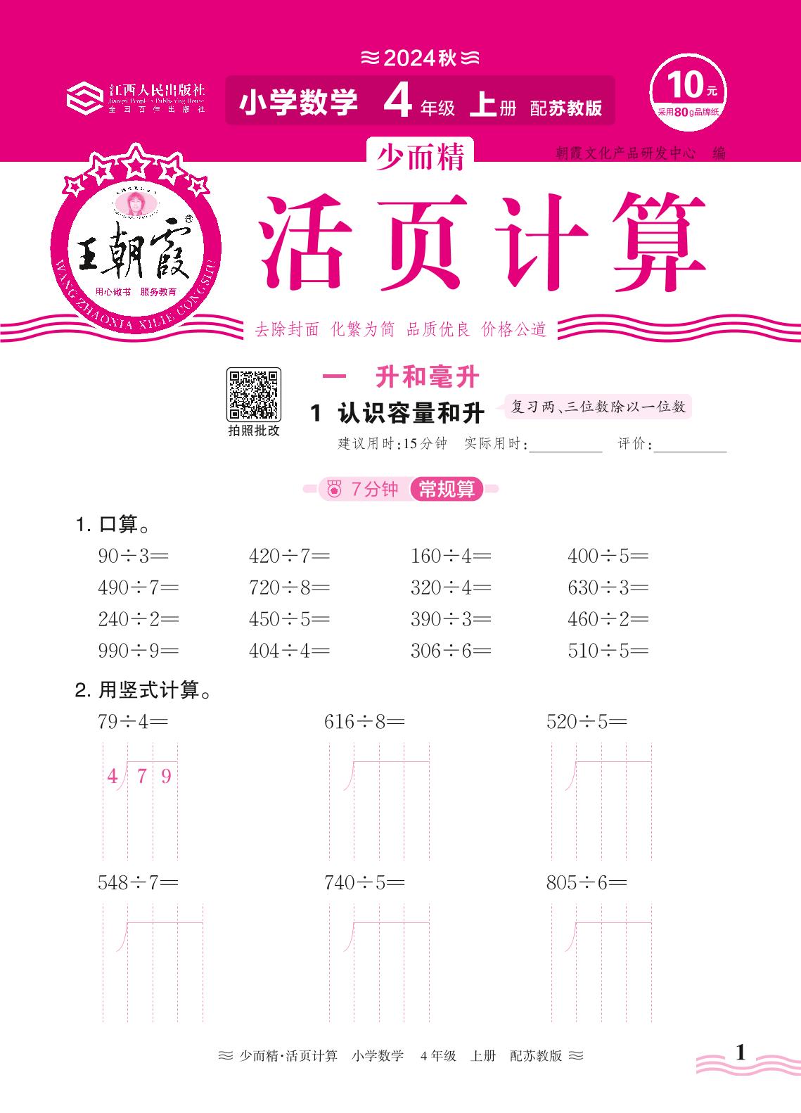 2024秋上册四年级数学苏教版 第一单元 升和毫升——1. 认识容量和升_R240819172005025