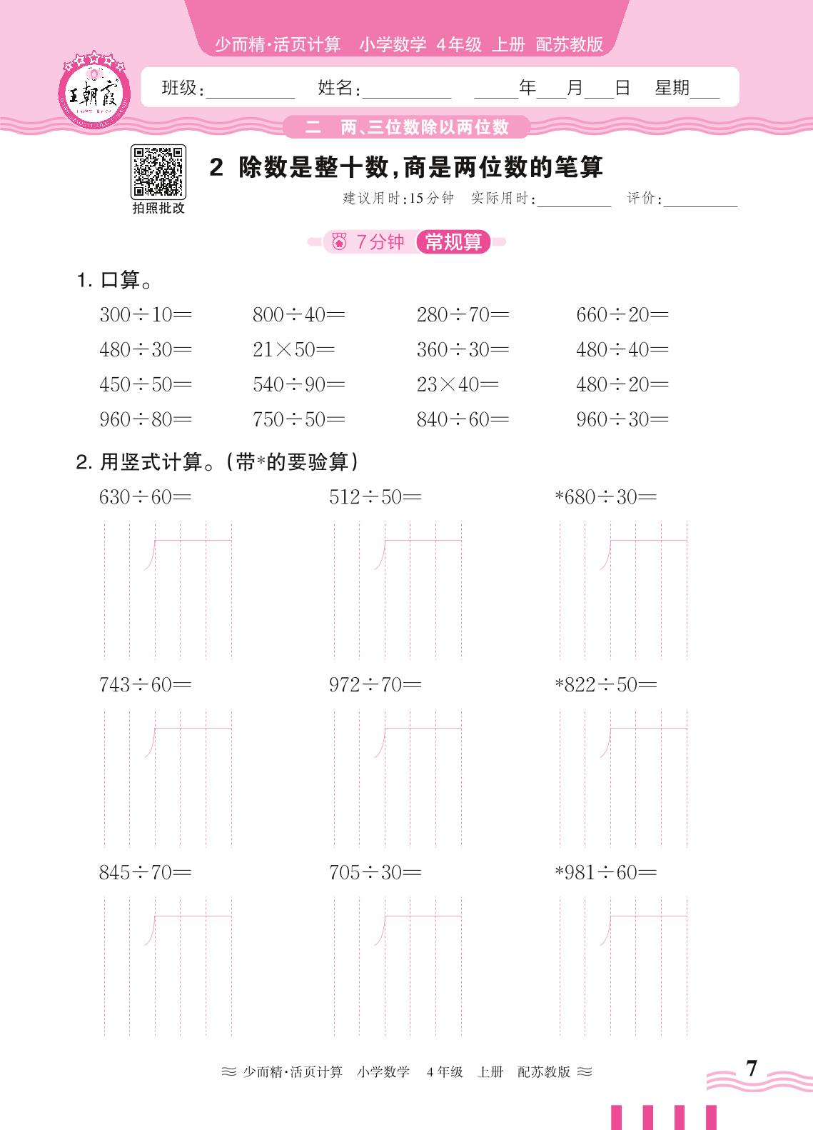2024秋上册四年级数学苏教版 第二单元 两、三位数除以两位数——2. 除数是整十数,商是两位数的笔算_R240819172006079