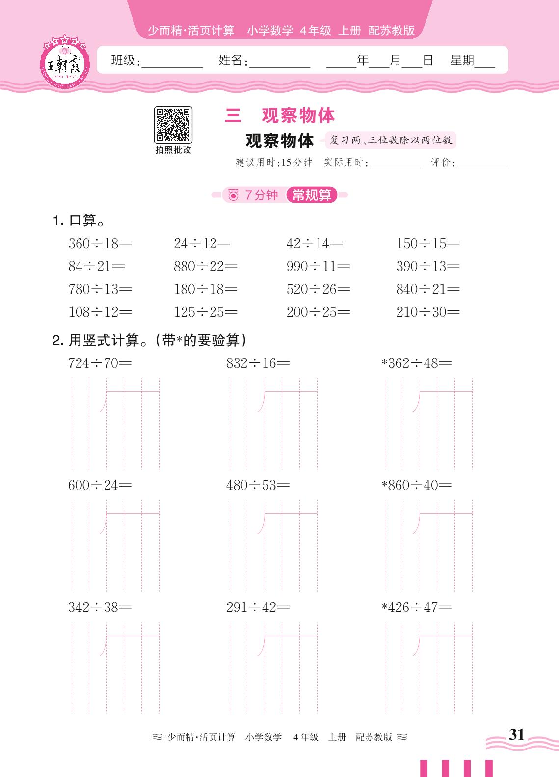2024秋上册四年级数学苏教版 第三单元 观察物体——观察物体