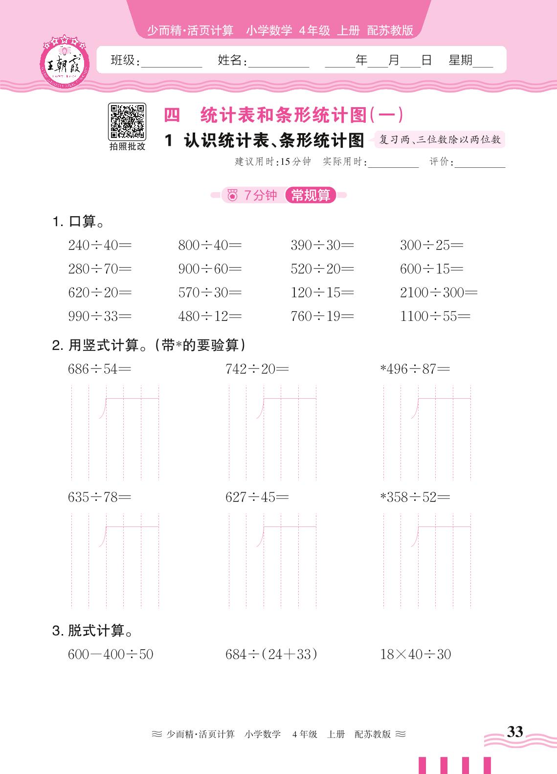 2024秋上册四年级数学苏教版 第四单元 统计表和条形统计图(一)——1. 认识统计表、条形统计图_R240819172012427
