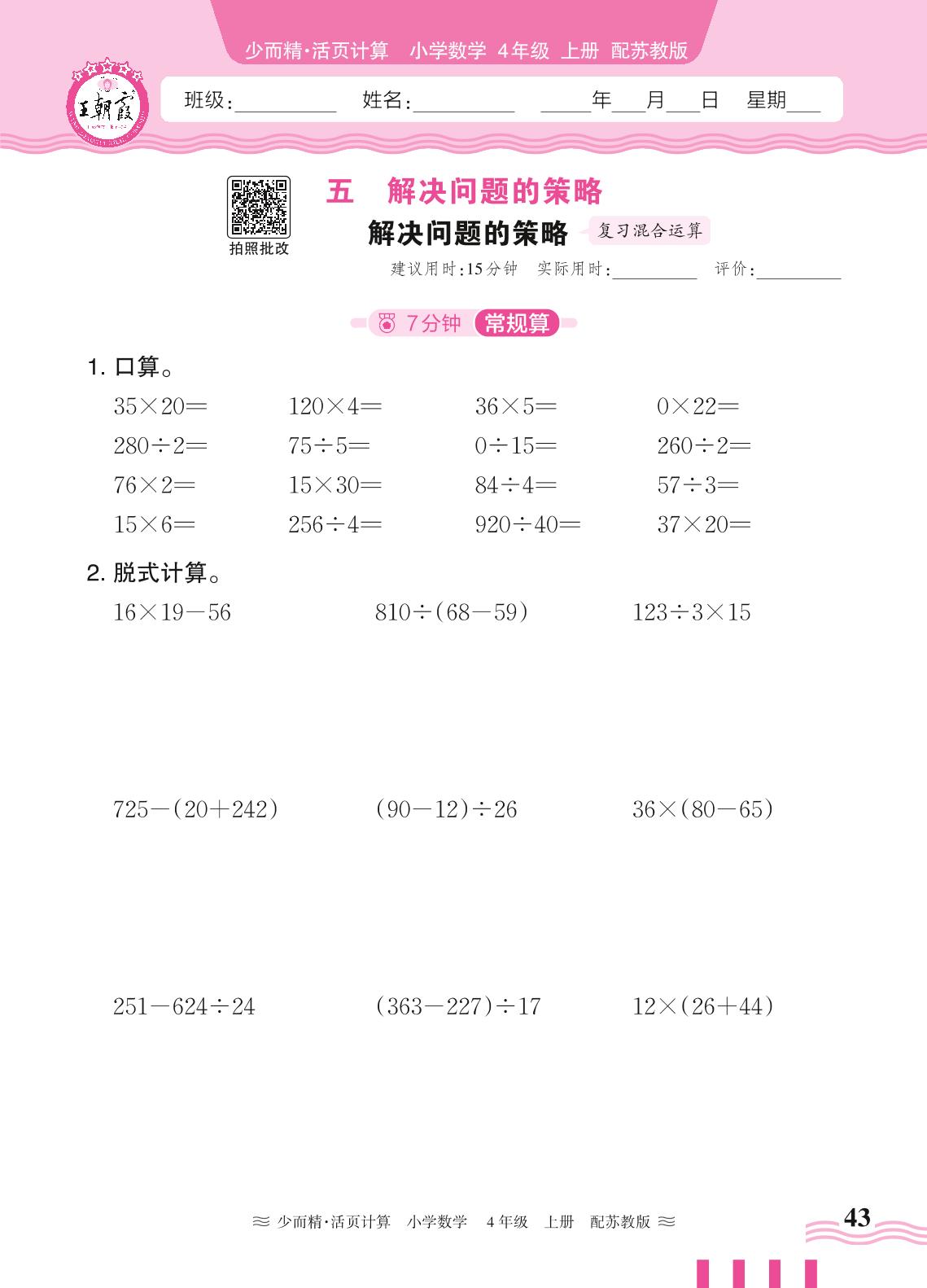 2024秋上册四年级数学苏教版 第五单元 解决问题的策略——解决问题的策略