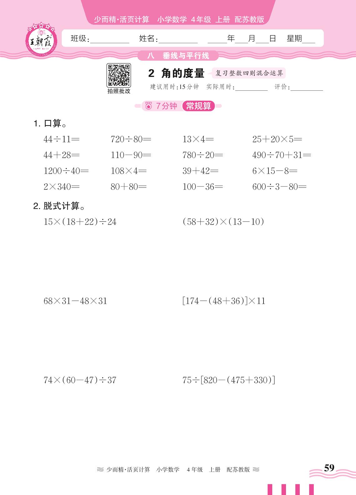 2024秋上册四年级数学苏教版 第八单元 垂线与平行线——2. 角的度量_R240819172016432