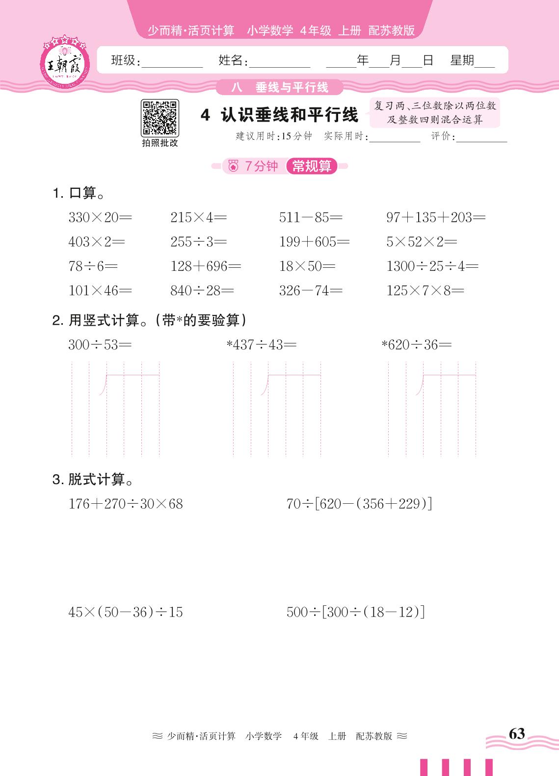 2024秋上册四年级数学苏教版 第八单元 垂线与平行线——4. 认识垂线和平行线