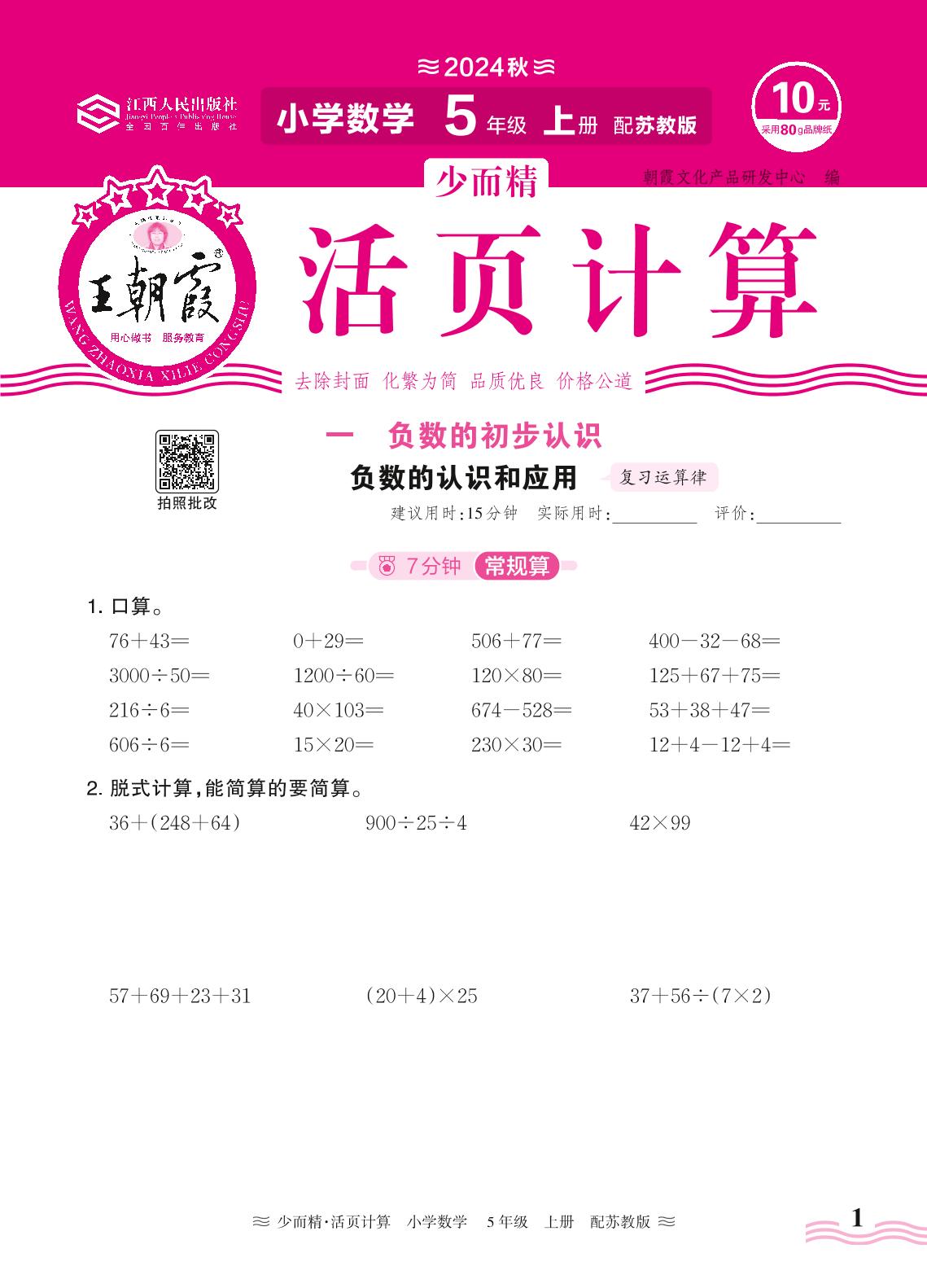 2024秋上册五年级数学苏教版 第一单元 负数的初步认识——负数的认识和应用