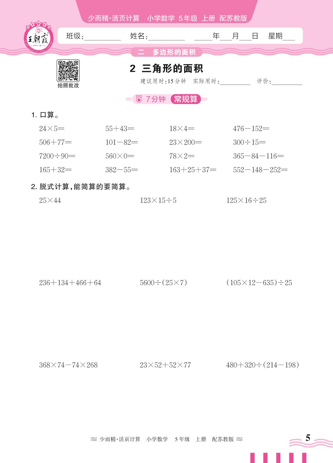 2024秋上册五年级数学苏教版 第二单元 多边形的面积——2. 三角形的面积_R240819173628111