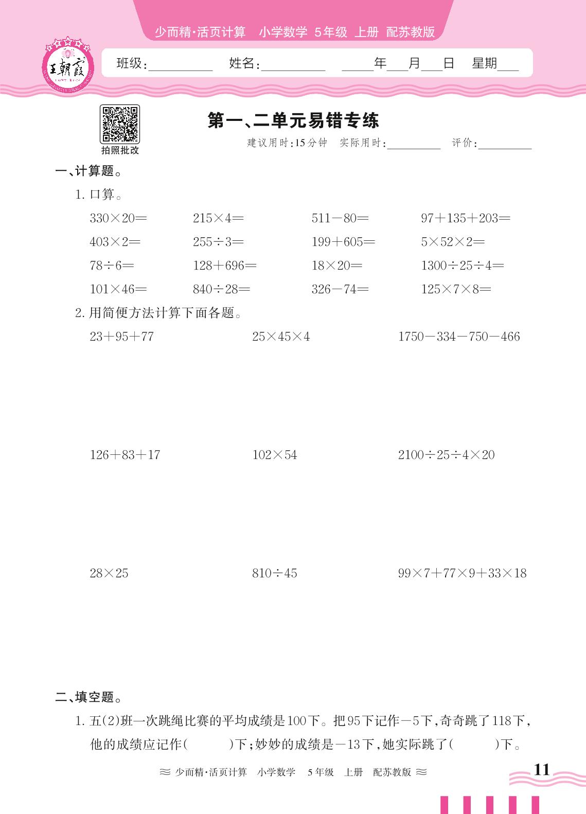 2024秋上册五年级数学苏教版 第一、二单元易错专练