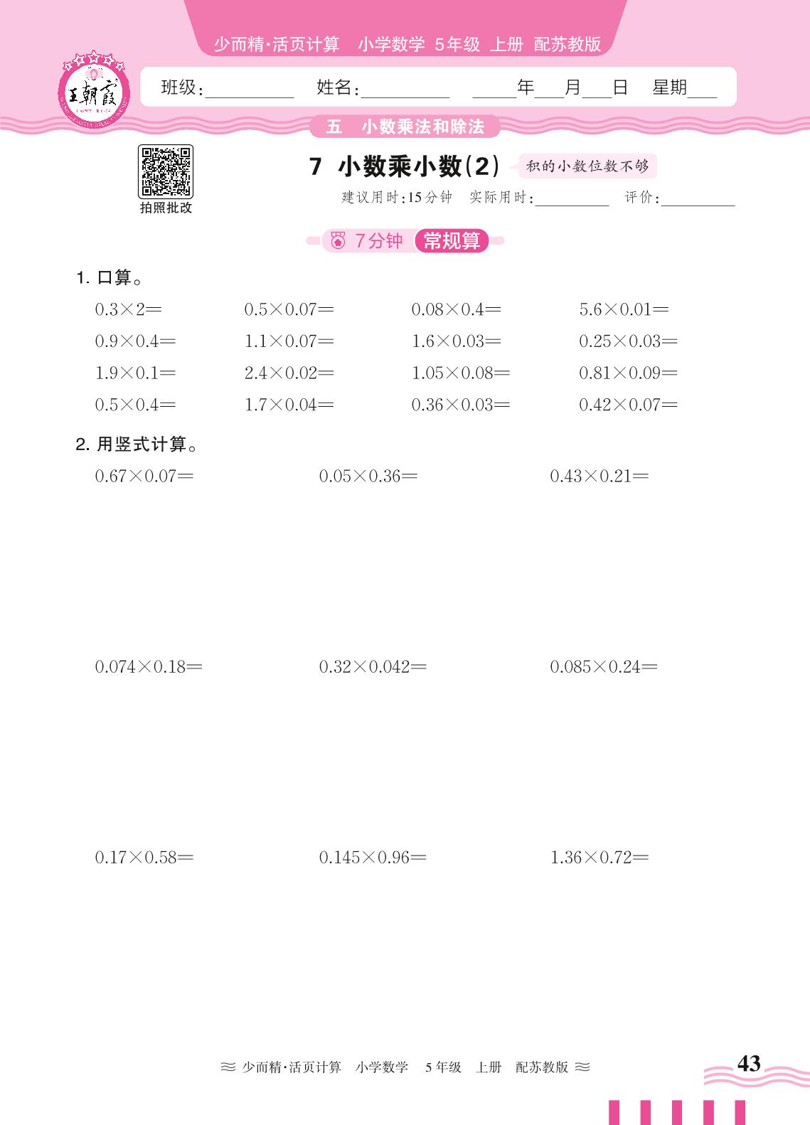 2024秋上册五年级数学苏教版 第五单元 小数乘法和除法——7. 小数乘小数(2)