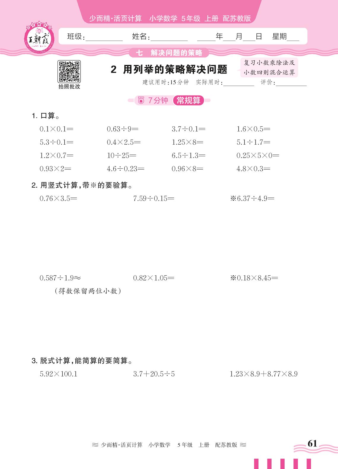 2024秋上册五年级数学苏教版 第七单元 解决问题的策略——2. 用列举的策略解决问题_R240819173639058