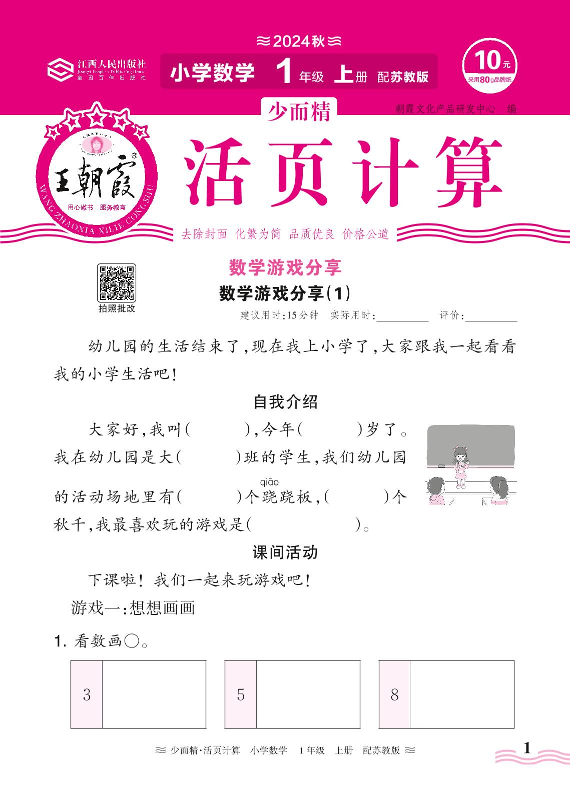 2024秋上册一年级数学苏教版 数学游戏分享——数学游戏分享(1)
