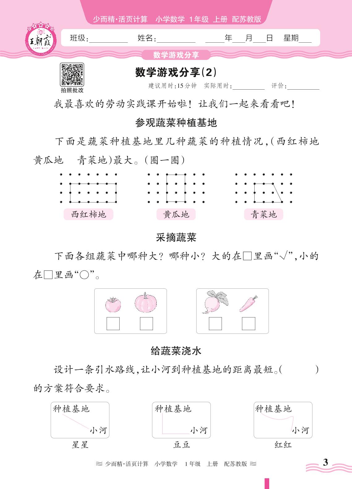 一年级数学苏教版(2024)上册课时作业