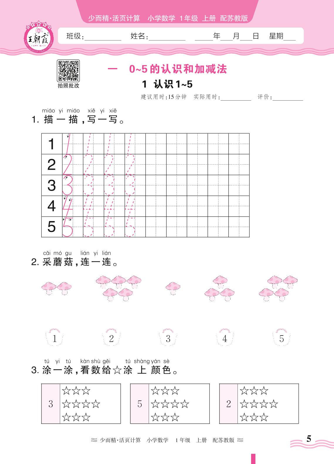 2024秋上册一年级数学苏教版 第一单元 0~5的认识和加减法——1. 认识1~5