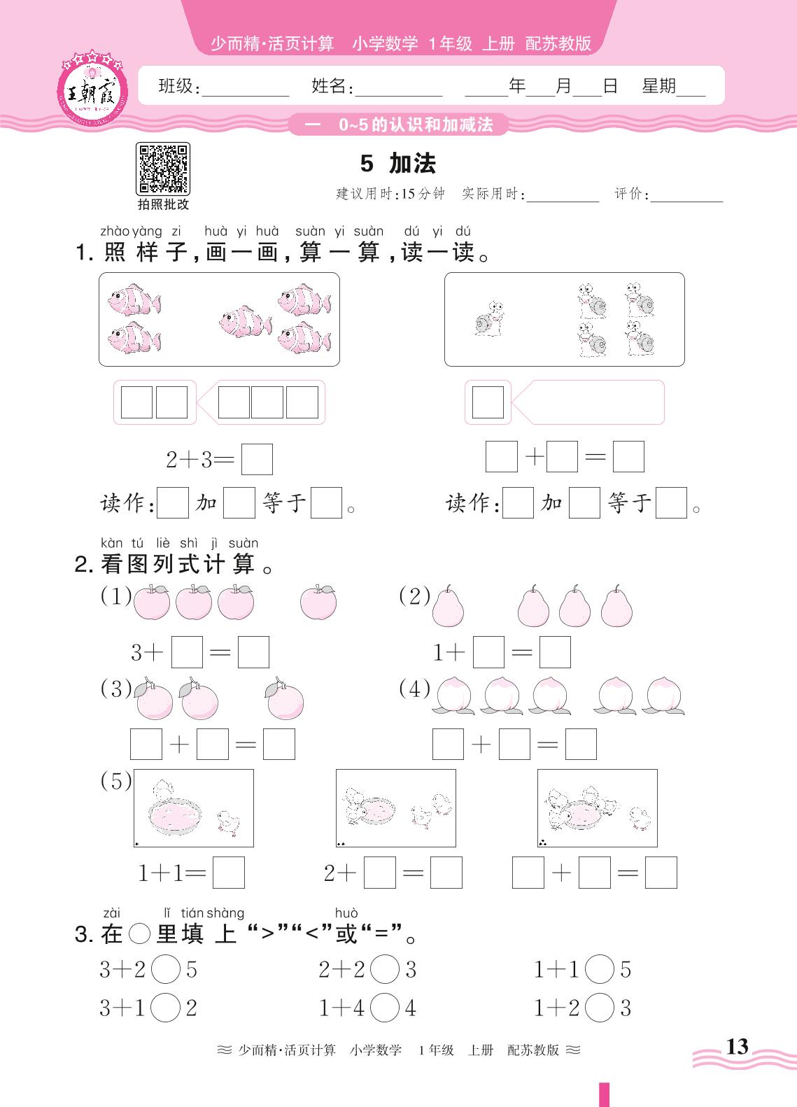 2024秋上册一年级数学苏教版 第一单元 0~5的认识和加减法——5. 加法